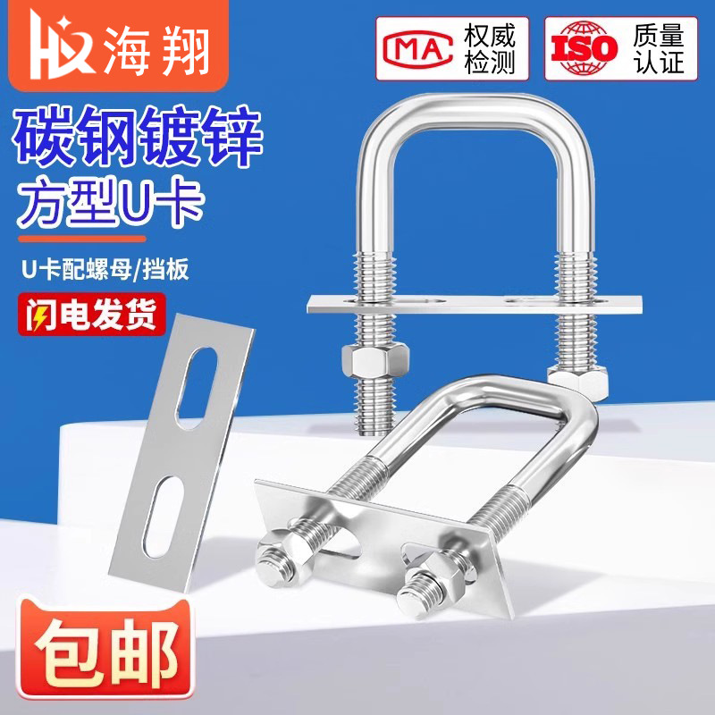 亜鉛メッキ角型カード直角カードU型バックルU形ボルトネジバッフル付きパイプ固定具パイプクリップM6-M12