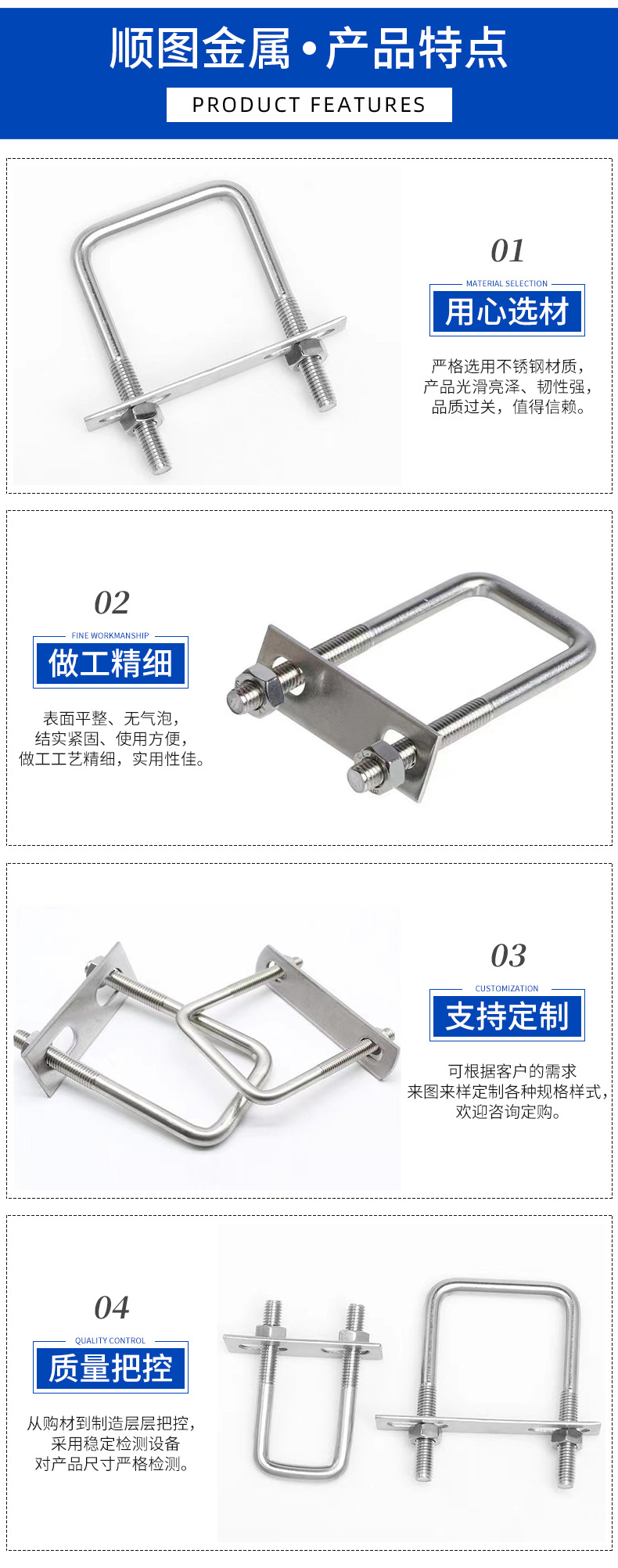 304亜鉛メッキu型ボルトu型カードu型ねじ管カード建築事前埋め込みバンド管カードm6u型ボルトを供給する