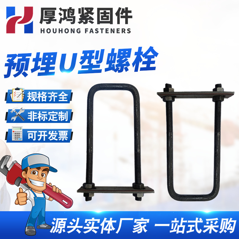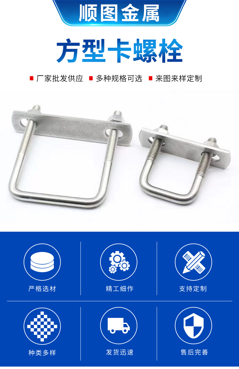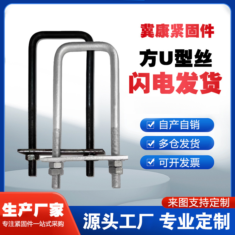 u型方卡生产厂家方u型丝预埋件工字钢直角U型卡U型螺栓u型预埋件