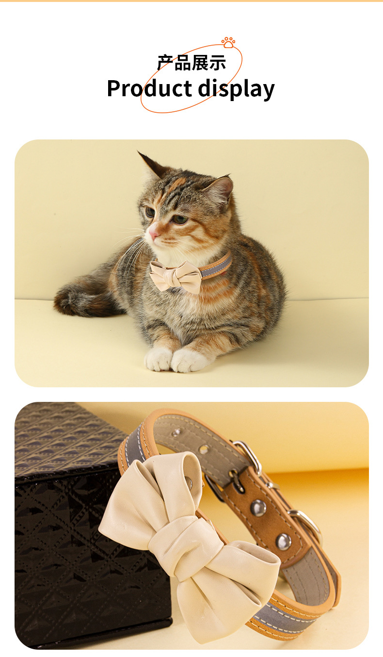 反射革蝶結び首輪ペットアクセサリー猫マフラー迷子防止首輪鈴付きペット首輪HD