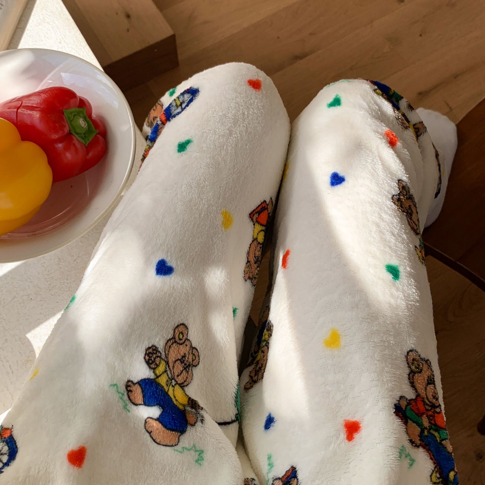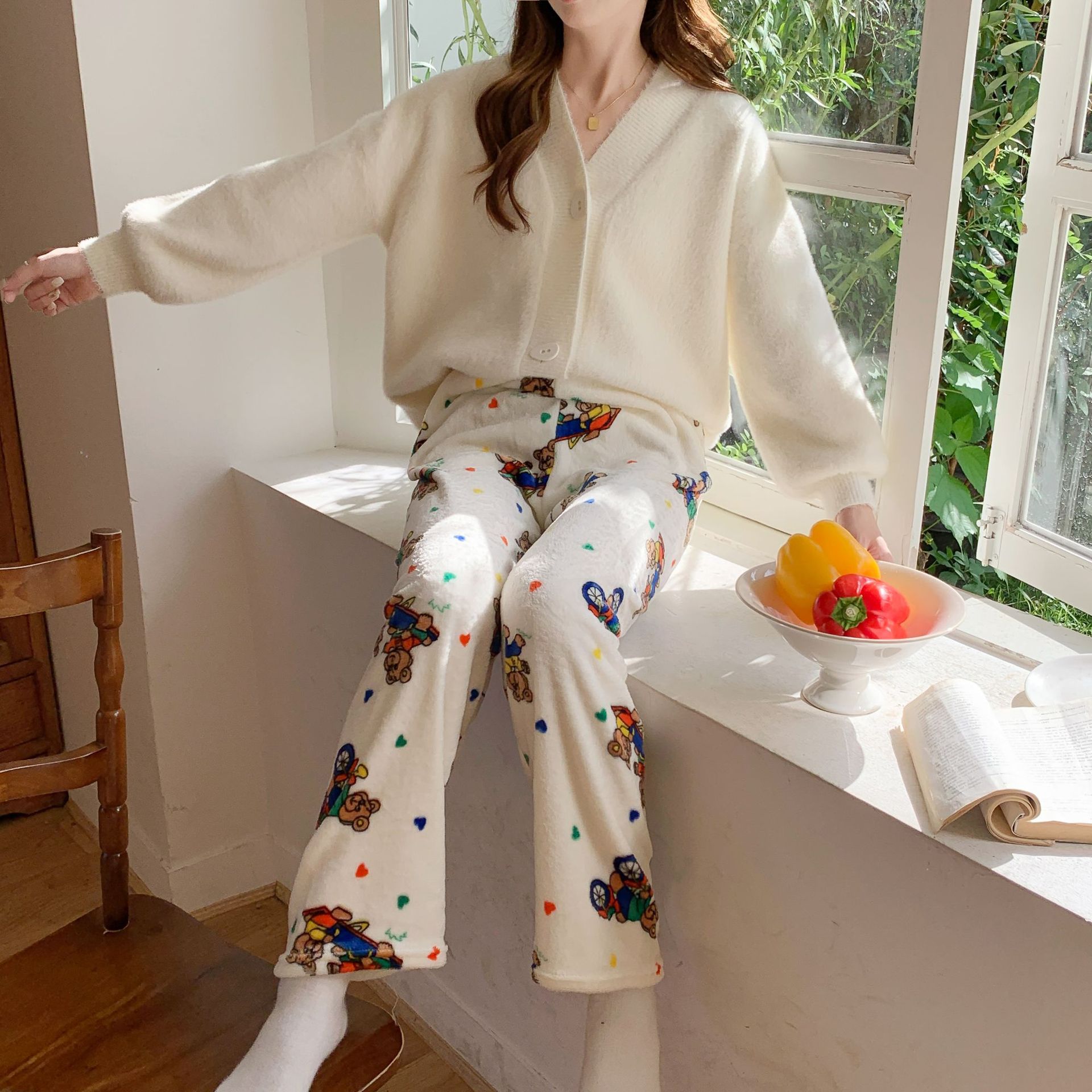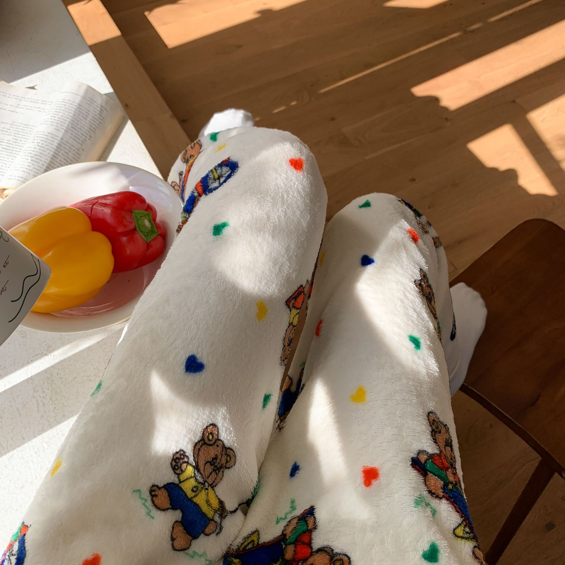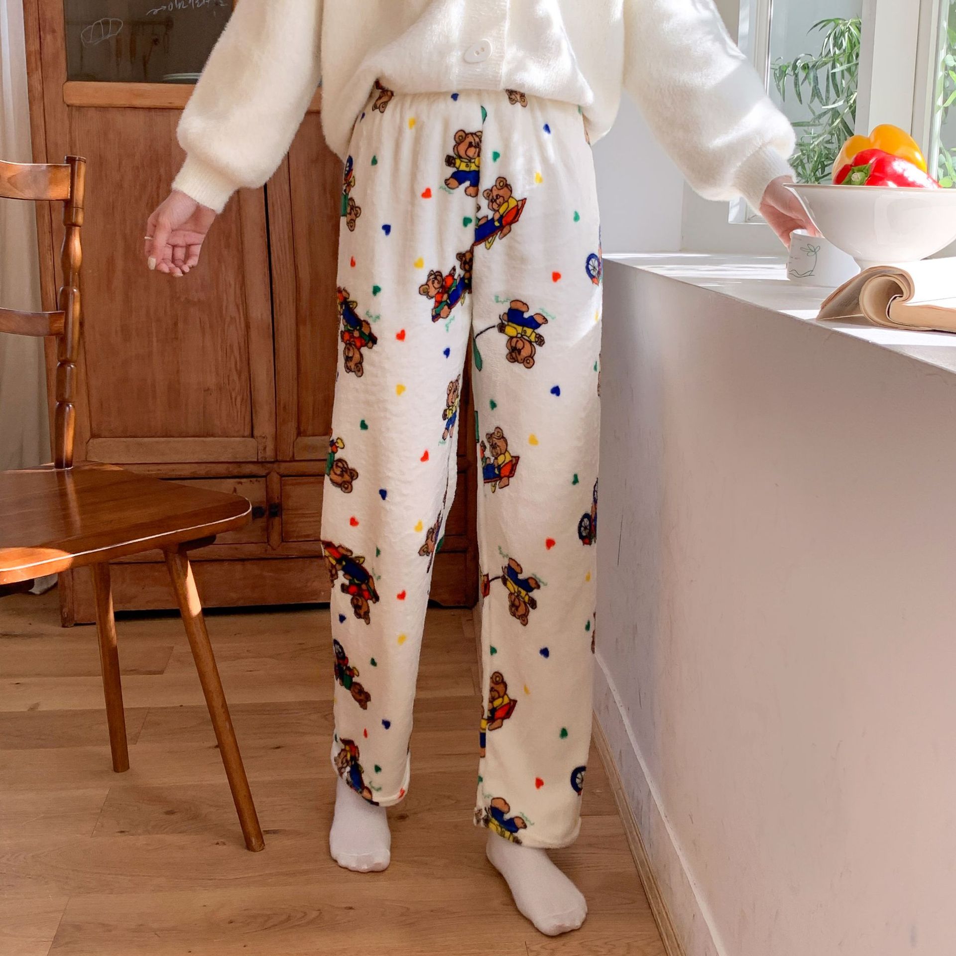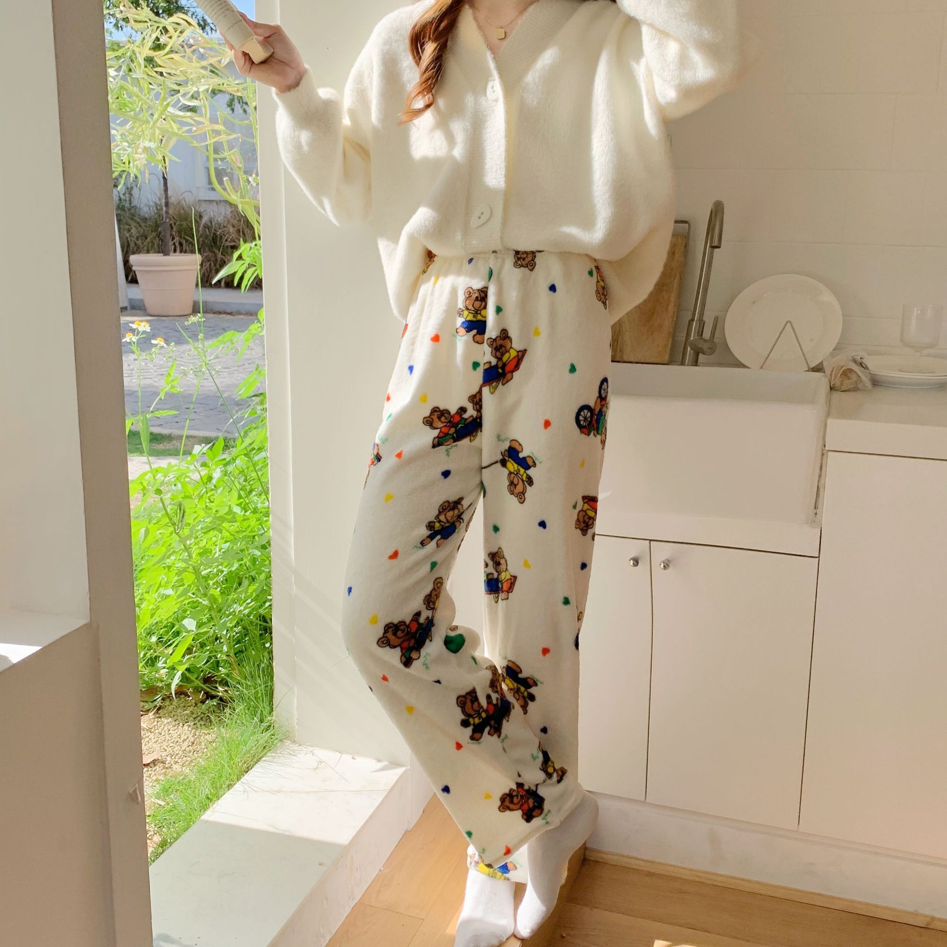 アニメ風船熊フランネルのパジャマ女性秋冬の新しいサンゴのベルベットの厚いベルベットの保温カジュアルな部屋のズボン
