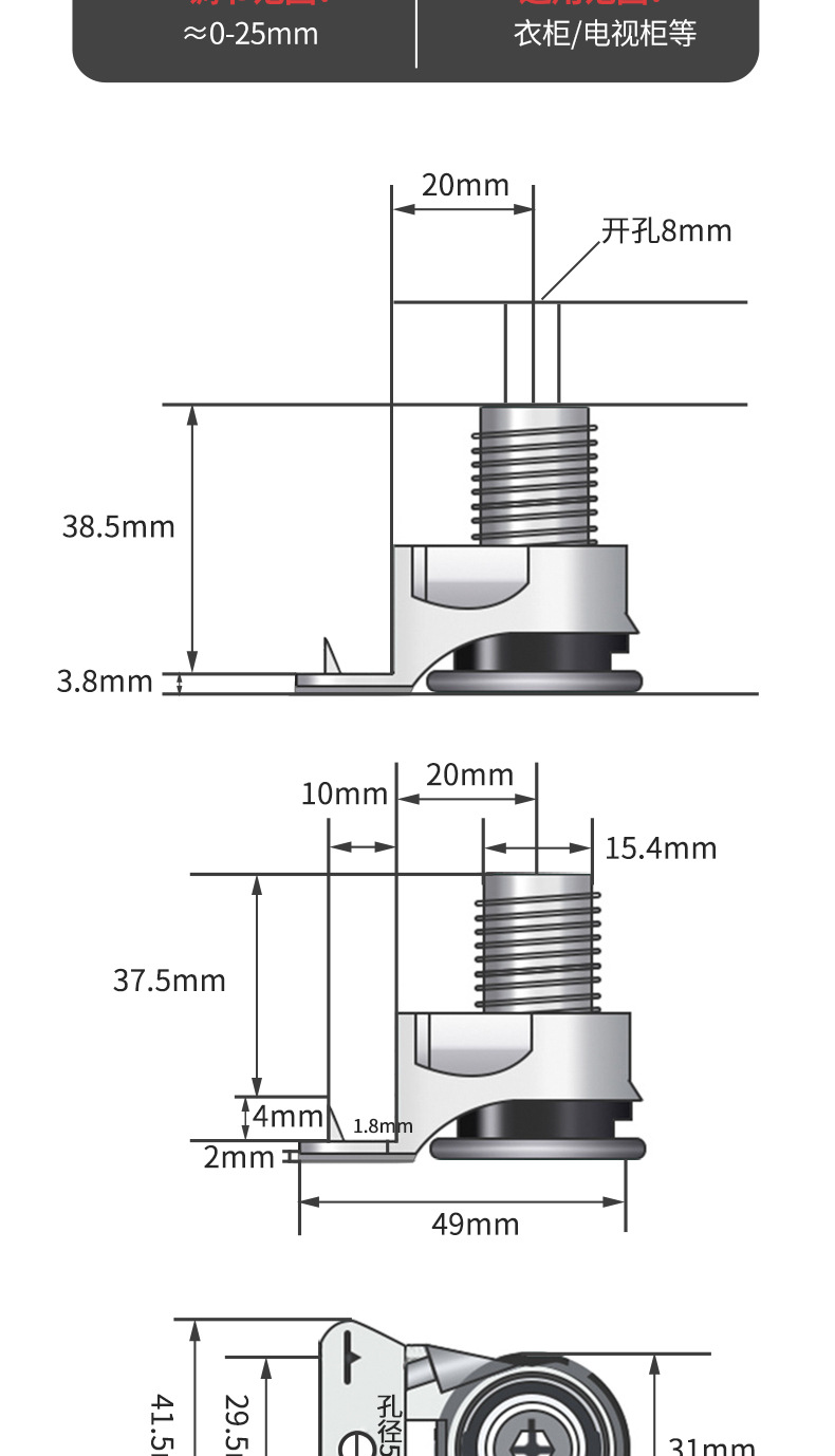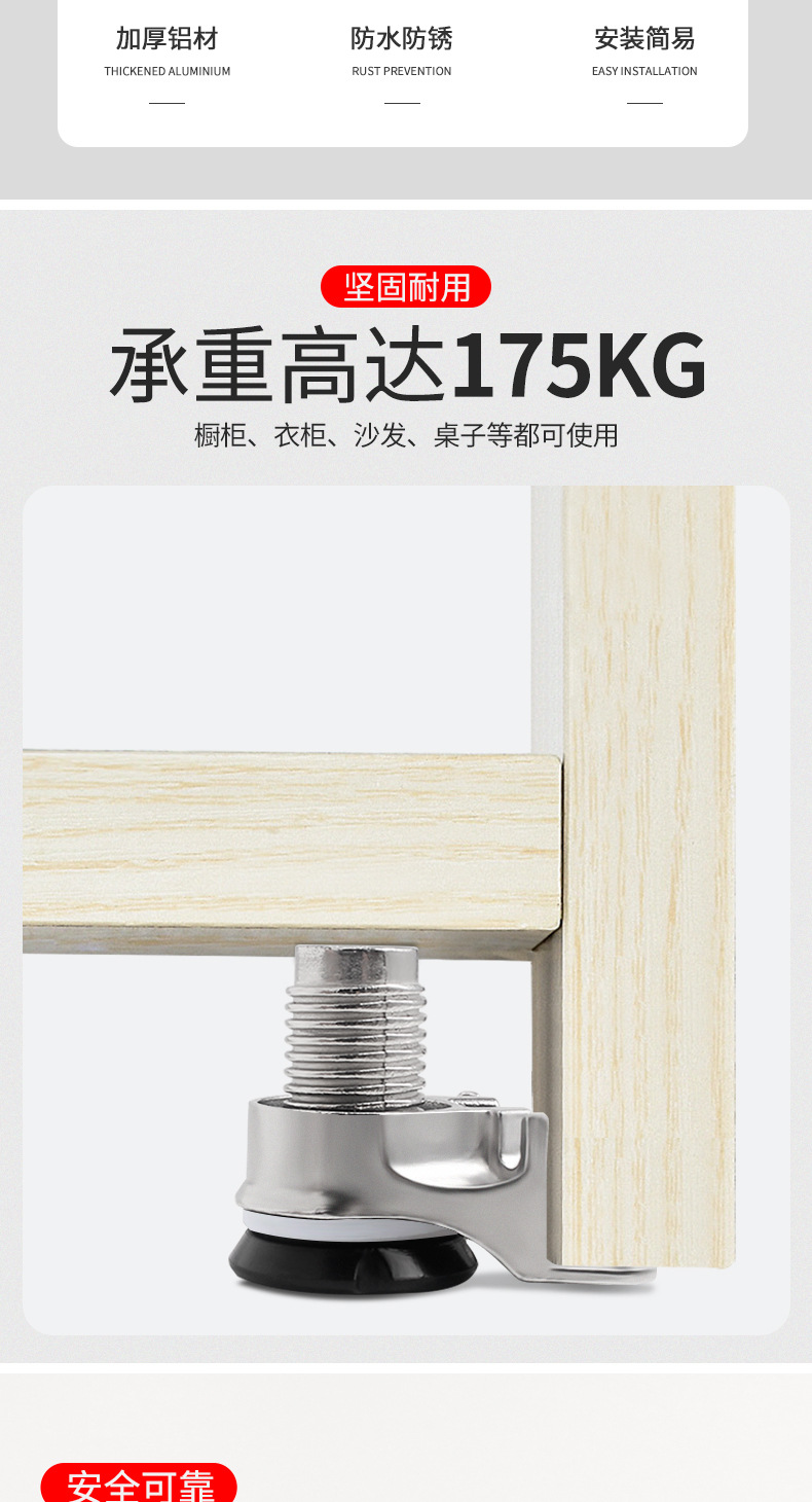 重型柜脚衣柜可调节脚支撑增高橱柜腿垫锌合金防滑家具高低调整脚