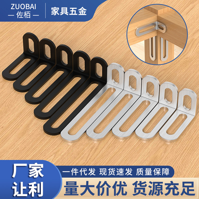 不锈钢双槽长孔角码直角90度L型调节活动支架层板托家具五金角铁