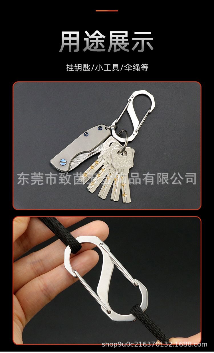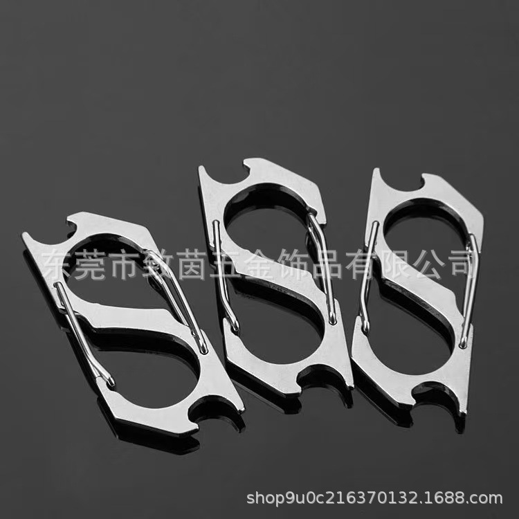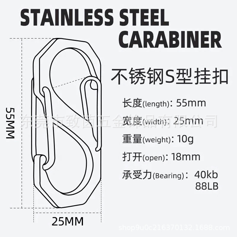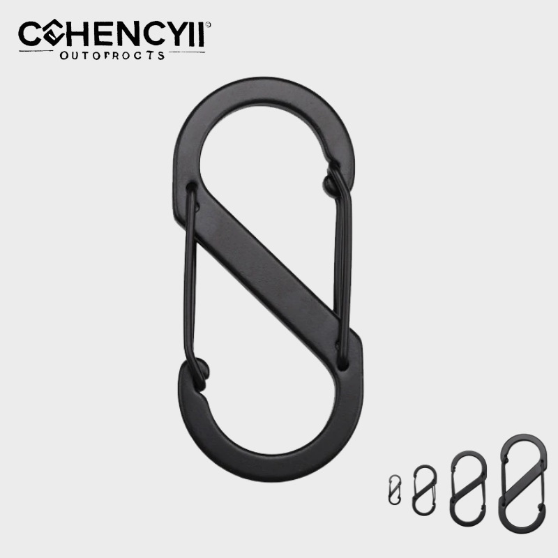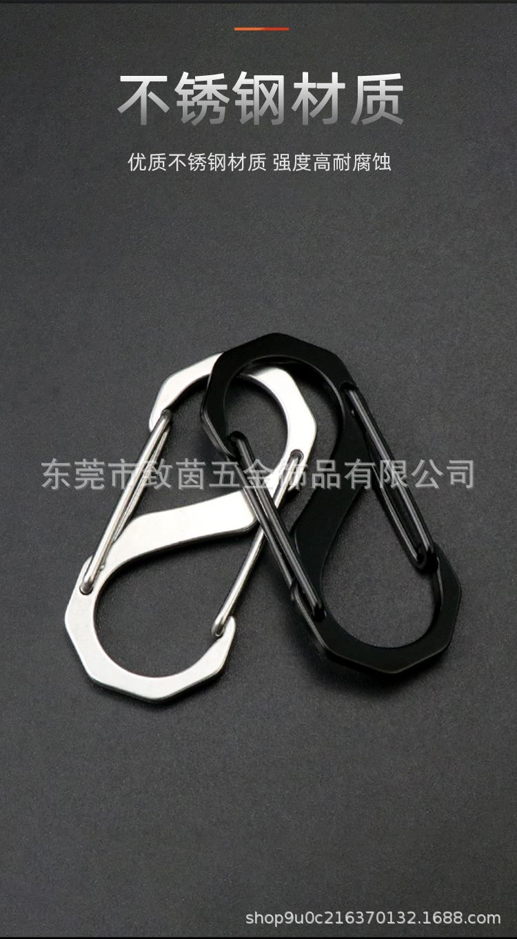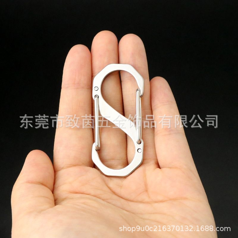 304ステンレス登山ボタンs型8字ボタン多機能フック屋外キャンプ耐久防錆快掛キーホルダー