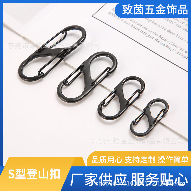 電気泳動全黒s型アルミニウム合金登山ボタンアウトドア8字バックルリュックサック掛けキーホルダースプリングダブルヘッド掛け