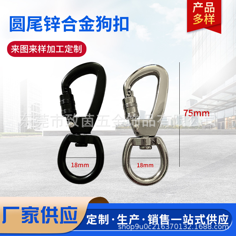 高級大型ペット牽引ロープ金物犬ボタン角尾亜鉛合金犬ボタン黒色ロック付き回転スプリングフック