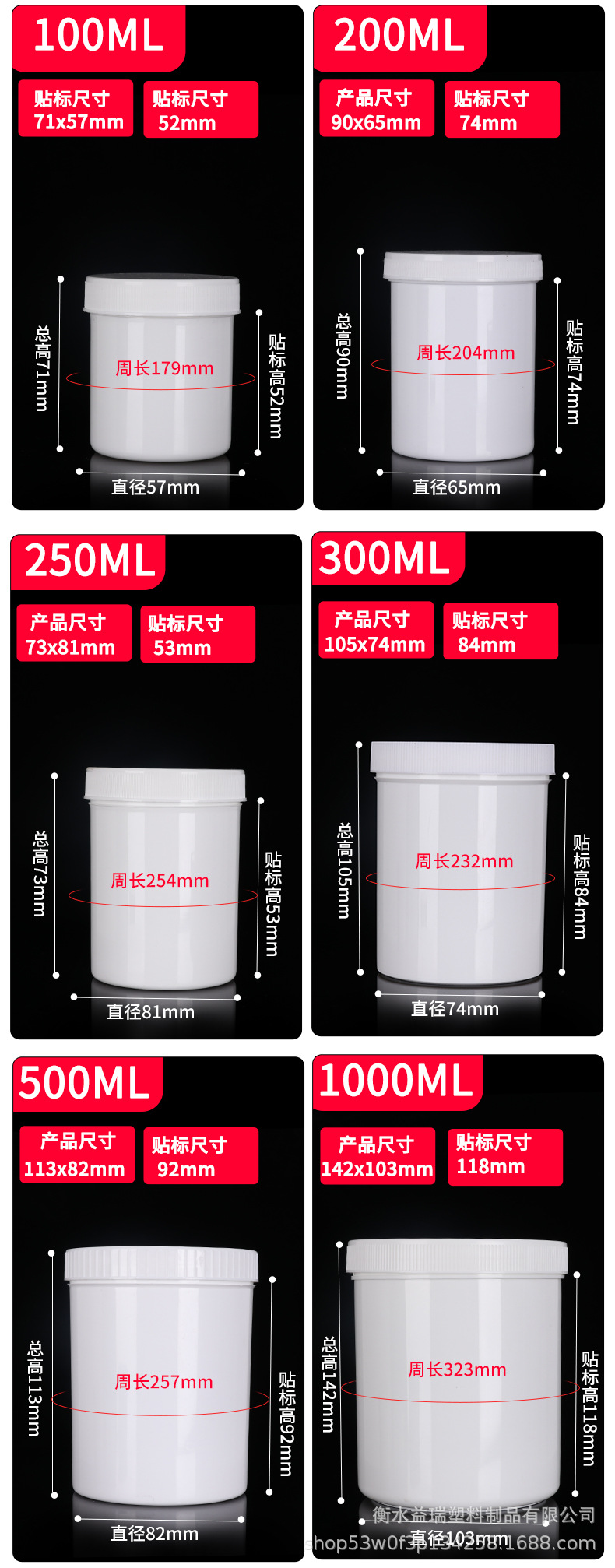 規格型番 100ml,200ml,250ml,300ml,500ml,1000ml