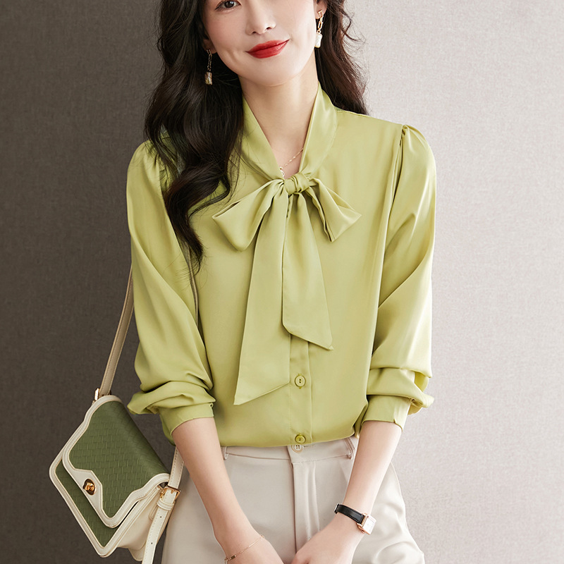 在庫ありサテンシャツ女性用2025春秋新作無地プロフェッショナルシャツ韓国風ルーズレディースシャツトップストレンディ