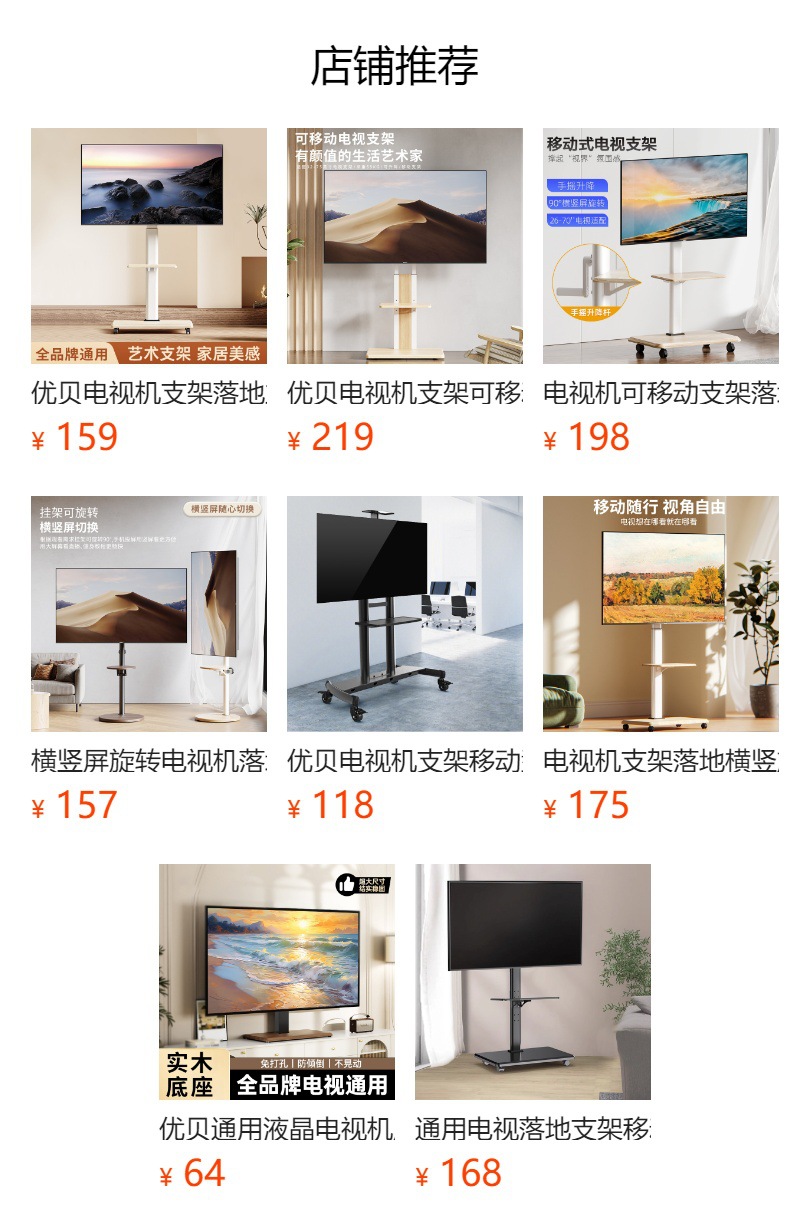 优贝简约复古实木落地电视支架家用轻便跨境实用小户型电视架子