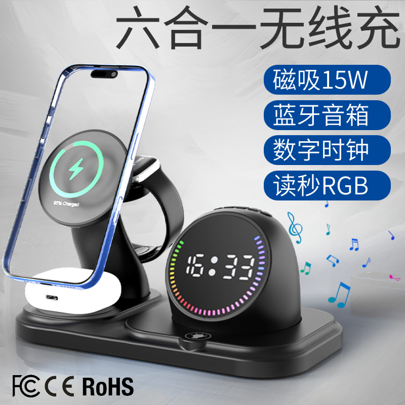 新款私模磁吸无线充蓝牙音箱时钟RGB适用苹果手机手表耳机无线充