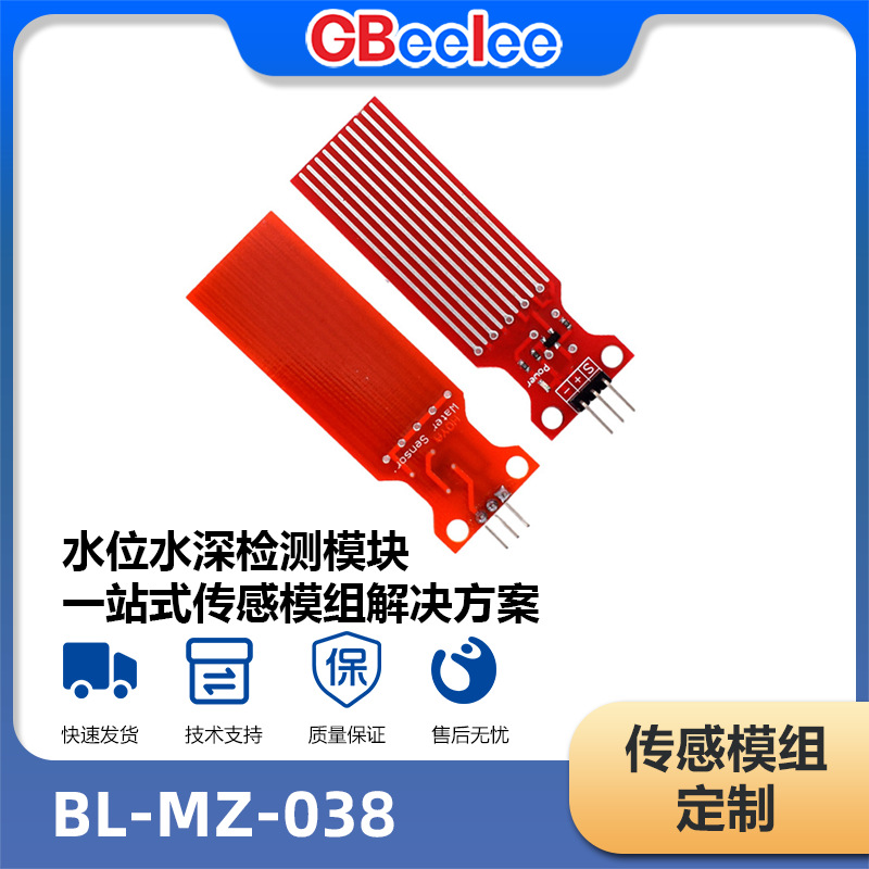 水位传感器专为水深检测而设计,可广泛用于感应降雨,水位,甚至液体泄漏。当将水位传感器放入水中时,水位没过铜线越多模拟值越大,读取水深传感器模块的模拟值,在串口打印出来,如需知道水深,我们直接将传感器放探测部分前面的一点点放入水中,这样我们就可以知道刚放入水中时的模拟值,知道这个值之后我们可以得出一个公式: 当前模拟值为CA ,放入水下时的模拟值为DA,水深 =(CA-DA)/100。