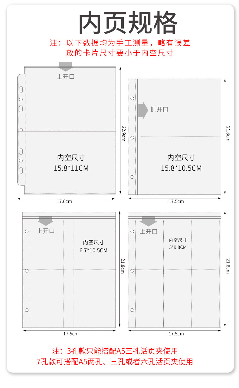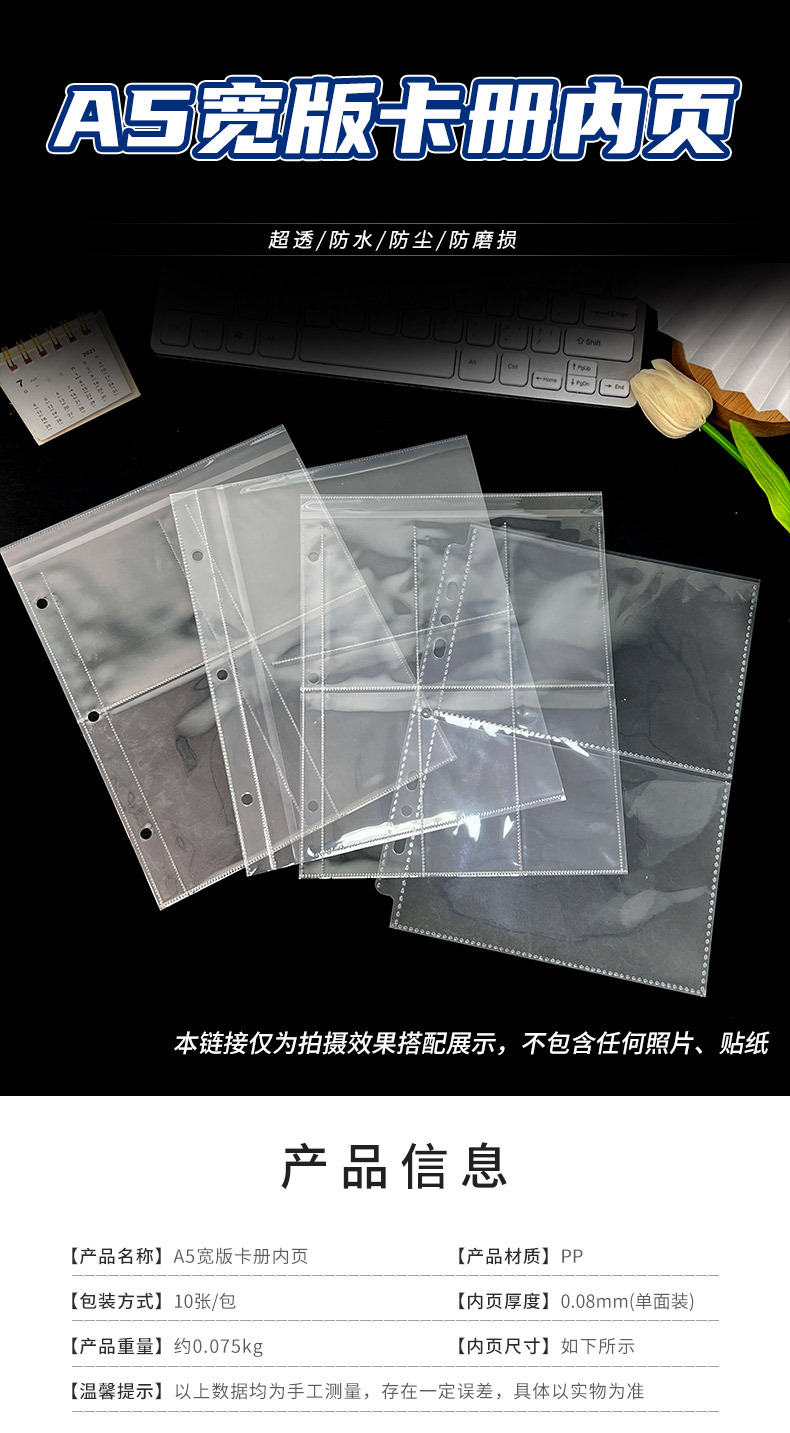 7穴万能カードページA5ワイド版透明カード帳ルーズリーフ3インチ四宮格愛豆アルバム小カード内ページ