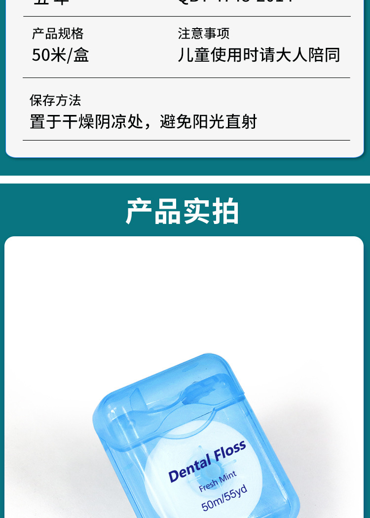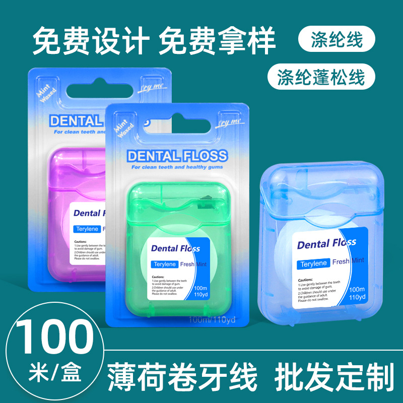 跨境批发牙线卷方形100米薄荷味加蜡涤纶蓬松线正畸专用口腔清洁
