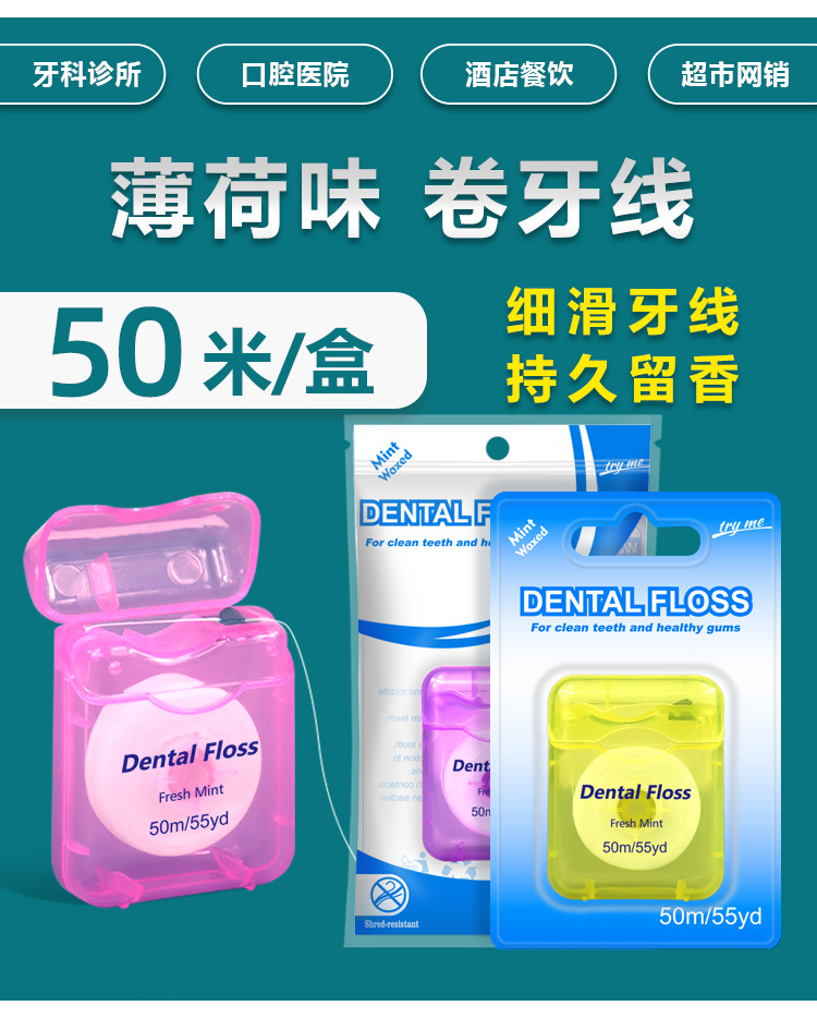 工場直販ナイロン拡張デンタルフロス 50m 拡張フロス歯科矯正フロスクロスボーダーカスタマイズ