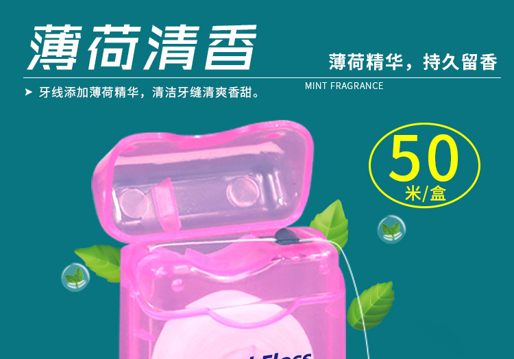 メーカー卸売 ロールデンタルフロス マイクロワックス ミント風味 デンタルフロス ポータブル三角ボックス 超極細 50m 高強度デンタルフロス カスタム