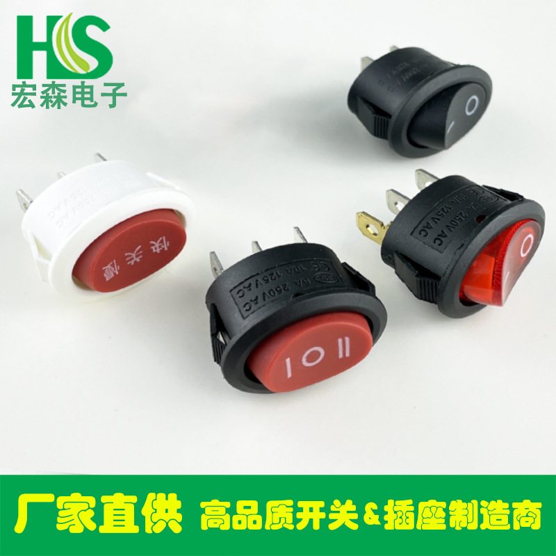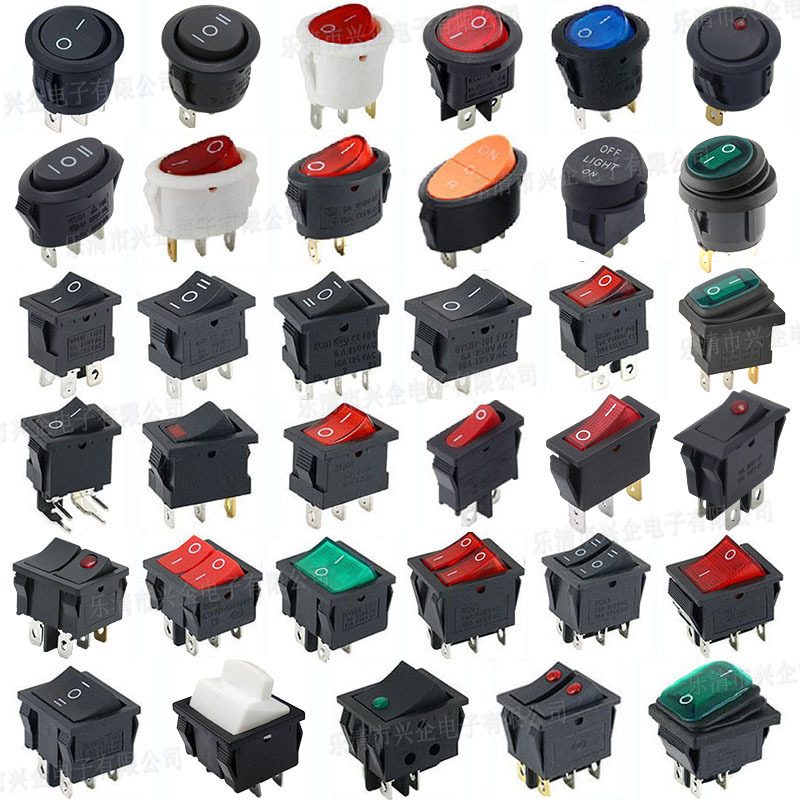 船型开关KCD1234二档3档圆形方形翘板开关弯脚电源开关黑红色带灯