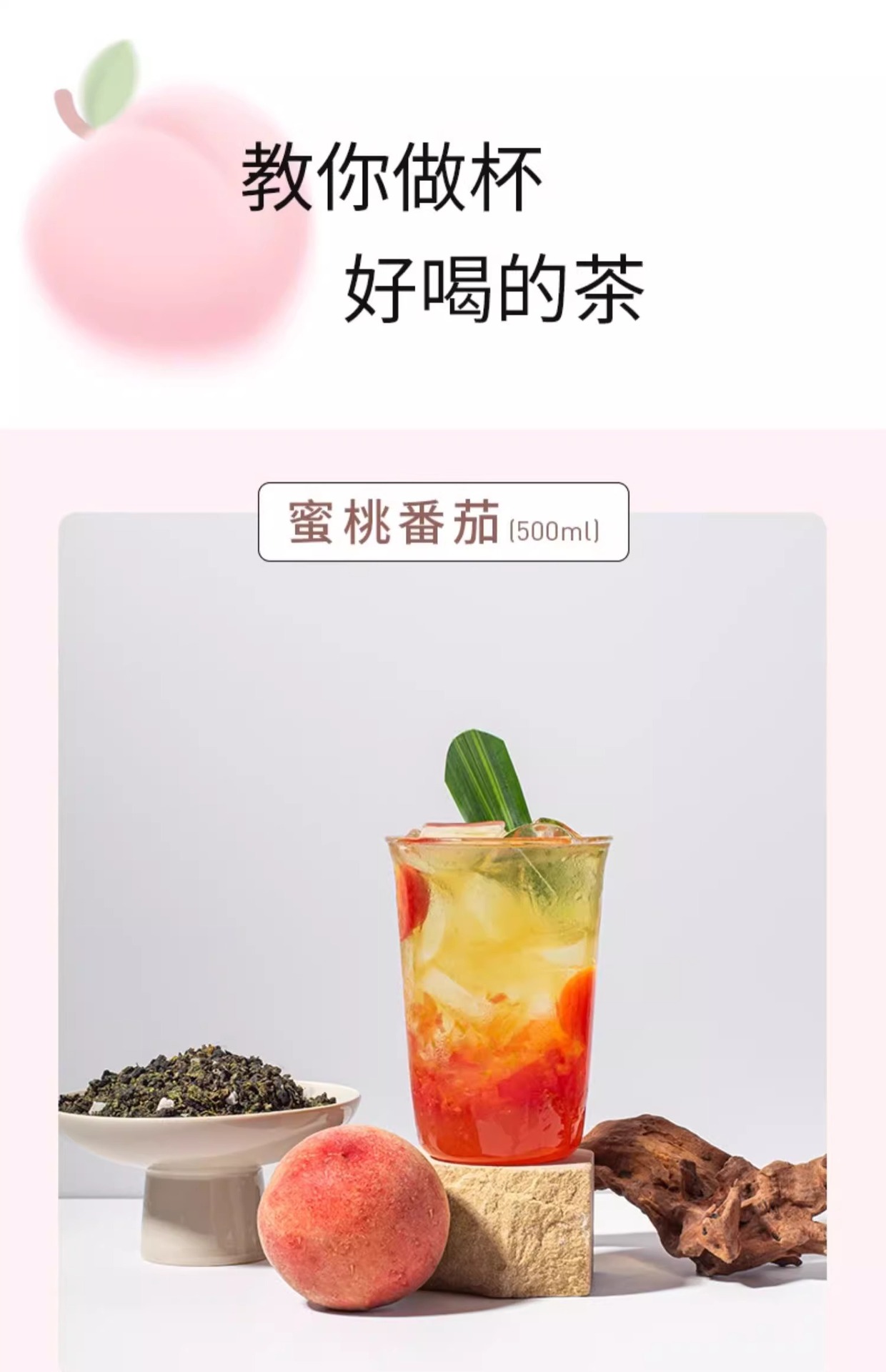 特調ピンク版東方蜜桃ウーロン茶手打レモン茶果物茶ミルクティー店に専用茶葉を並べます。