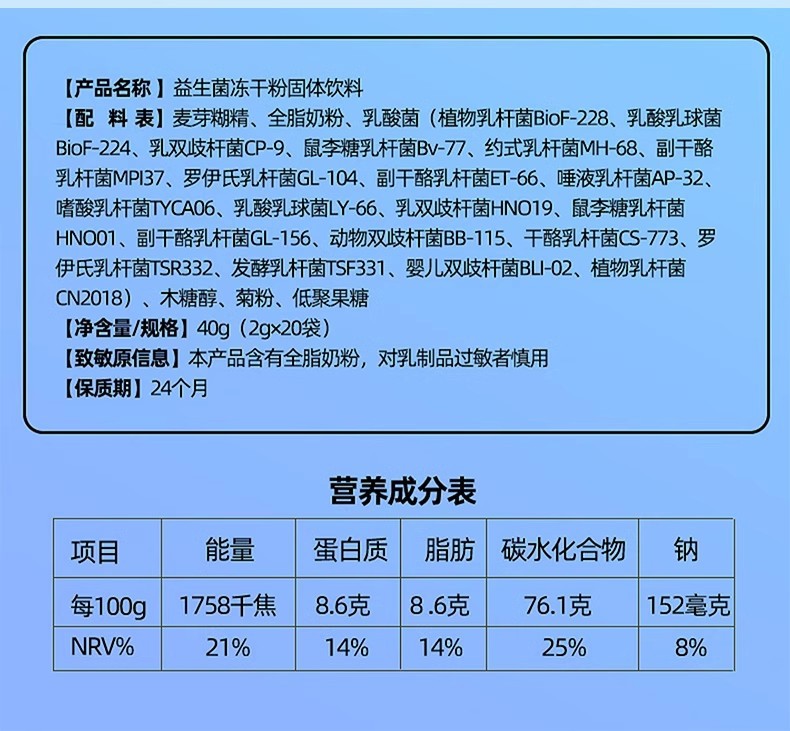 益生菌冻干粉多种高活性复合益生元益生菌零蔗糖OEM/ODM定制贴牌