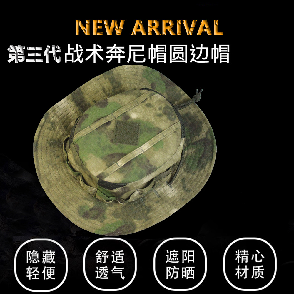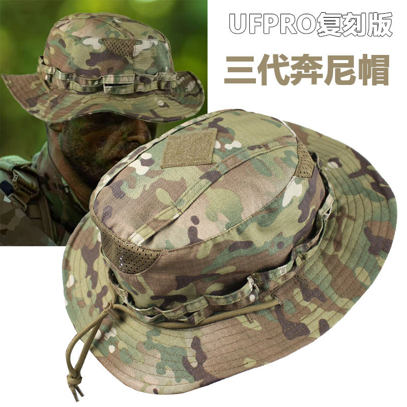 产品介绍:此版型是根据欧洲原版野战丛林部队设计,帽身前后尺寸不一,前面帽身浅是防止影响视线.椭圆形帽檐设计,使帽子立体感更强.穿戴相对更时尚.帽顶口袋设计.透气网眼布.
