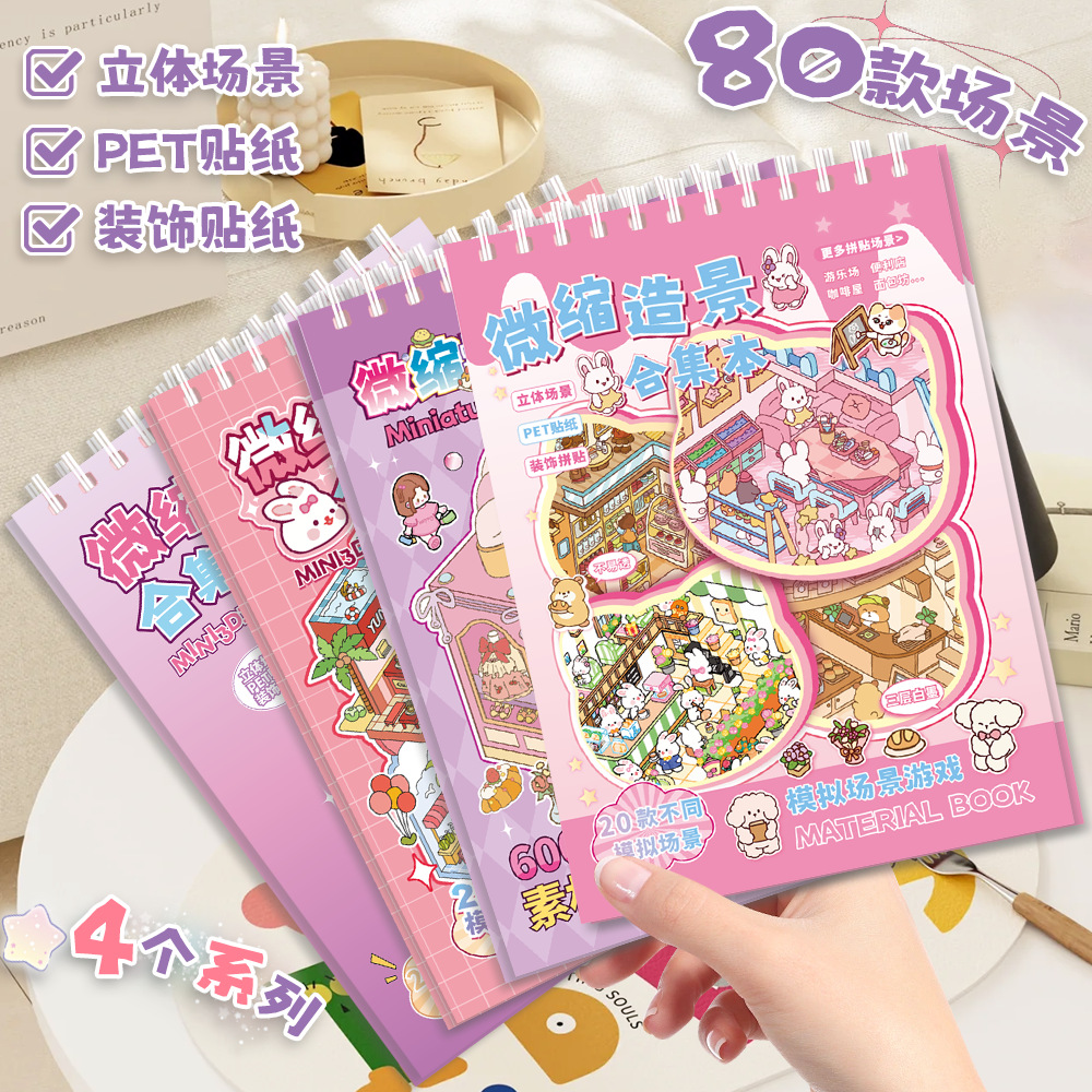 微缩造景贴纸本合集3D立体小屋贴纸儿童解压手工场景贴纸拼贴图案