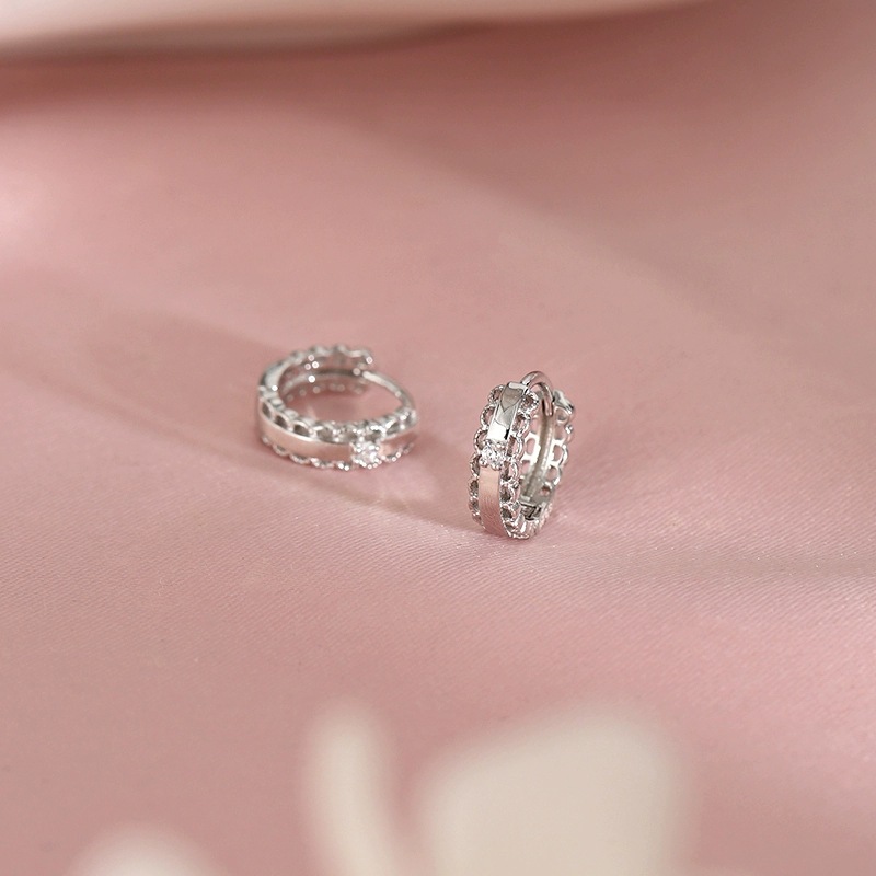 蕾丝花边圈圈耳扣女设计小众闪钻锆石耳环耳圈气质耳饰2025年新款