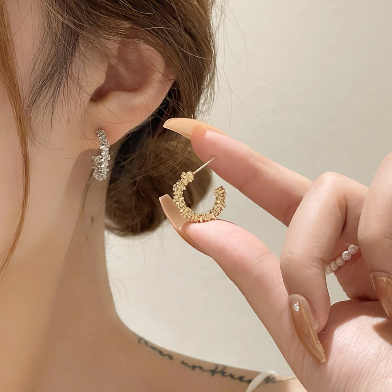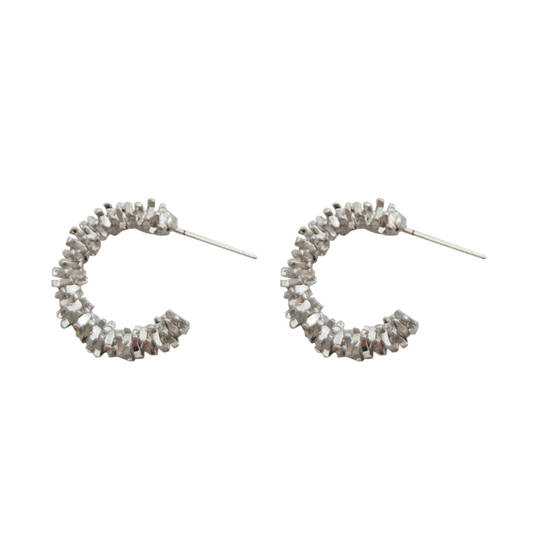 S925銀不規則c型砕銀数両ピアス小衆デザインinsイヤリング金属風個性ファッション耳飾り