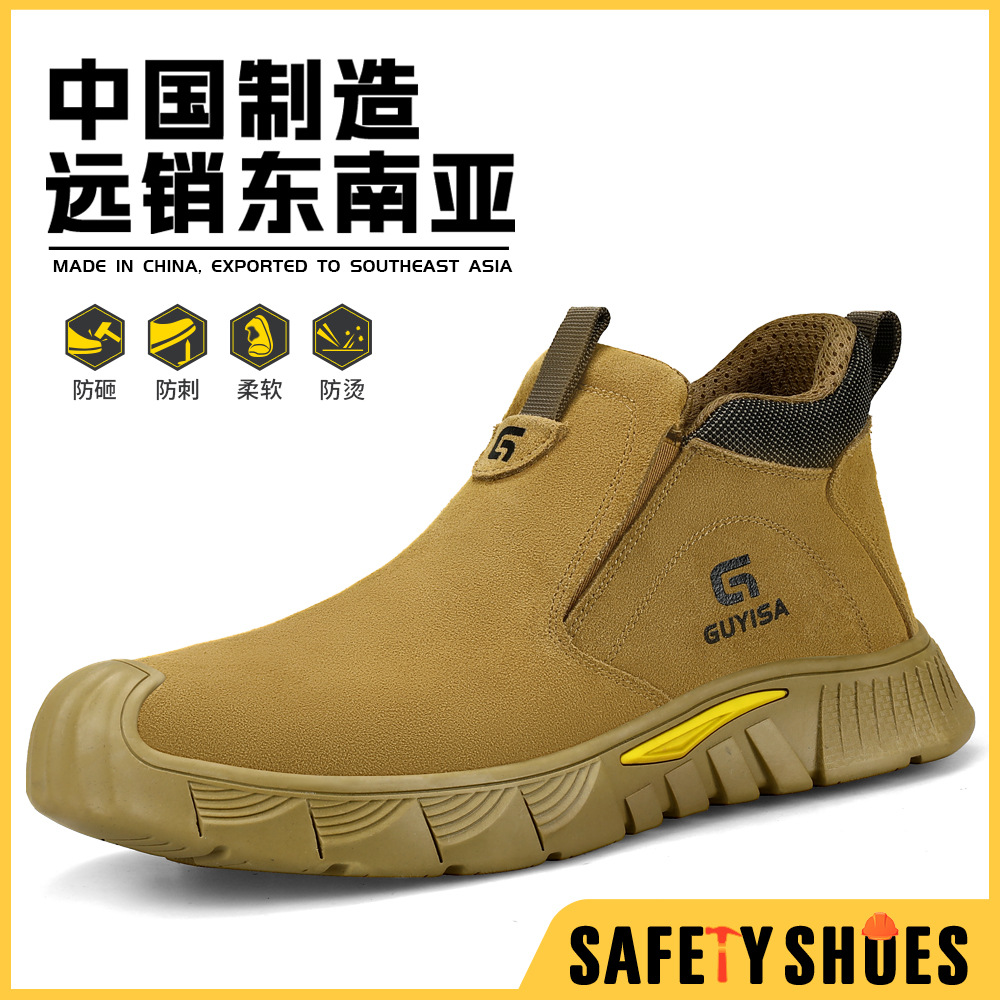 跨境优选焊工鞋防砸防刺穿钢头鞋反绒防火花耐磨安全工作劳保鞋