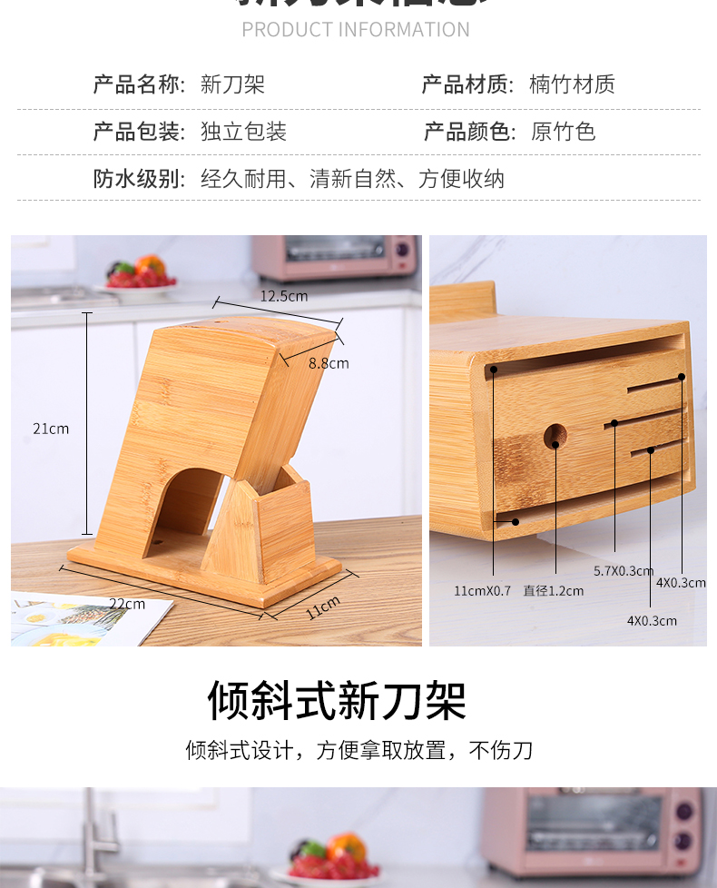 竹制刀架厨房家用刀座多功能置物架菜刀架收纳架楠竹实木插刀架