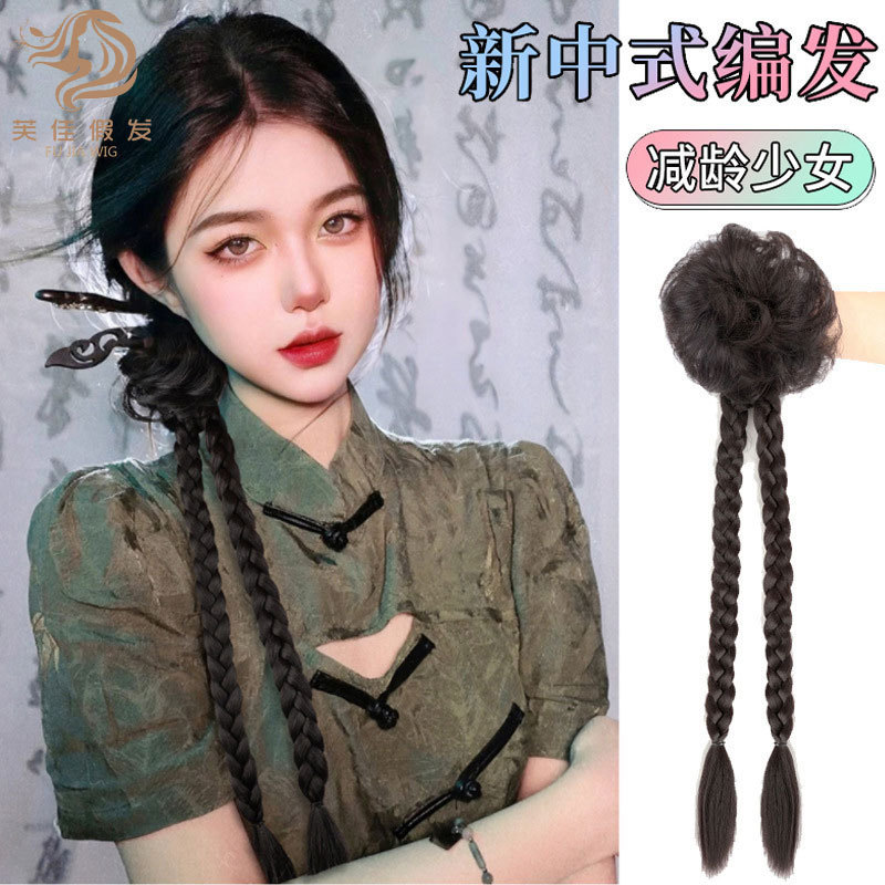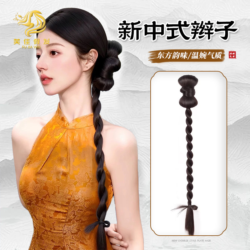 新しい中国風ウィッグ三つ編みポニーテール女性のサイドローポニーテール中国風蝶ツイストツイスト三つ編みシミュレーションウィッググリッパー