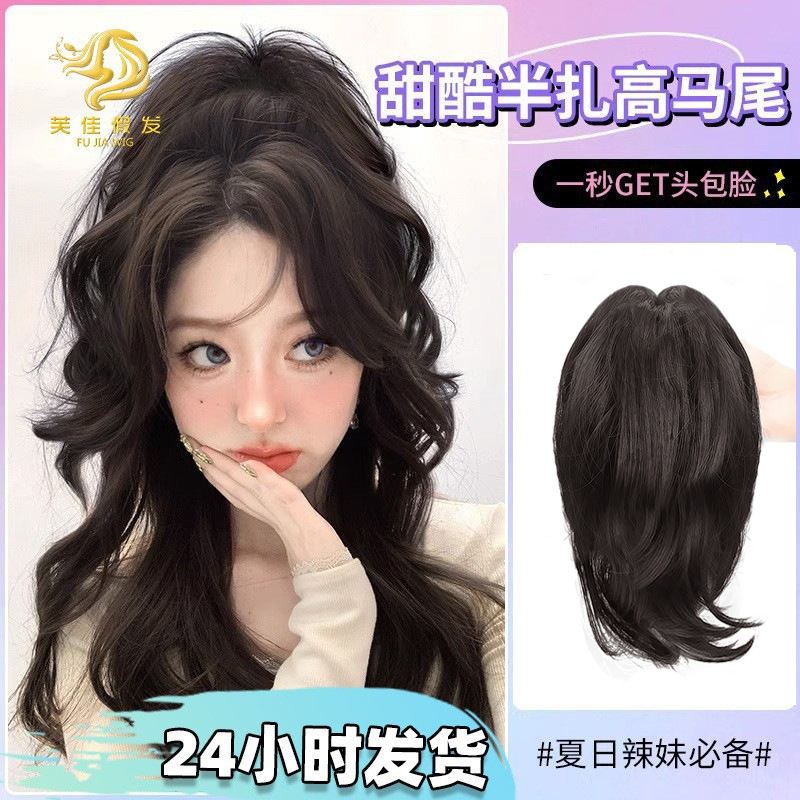かつらの女性の長い髪のシミュレーション少女感の高い馬尾のお下げの軽い鶏の巣の滝の半は高い馬尾のカールを刺します。