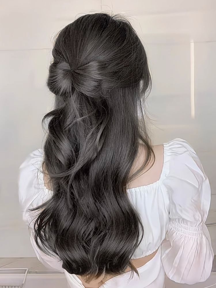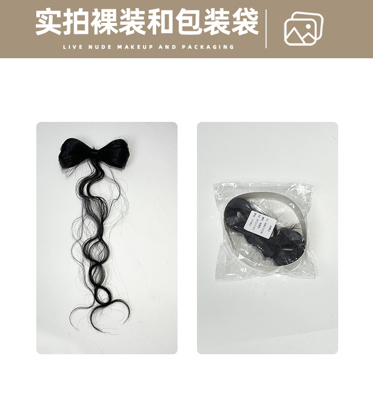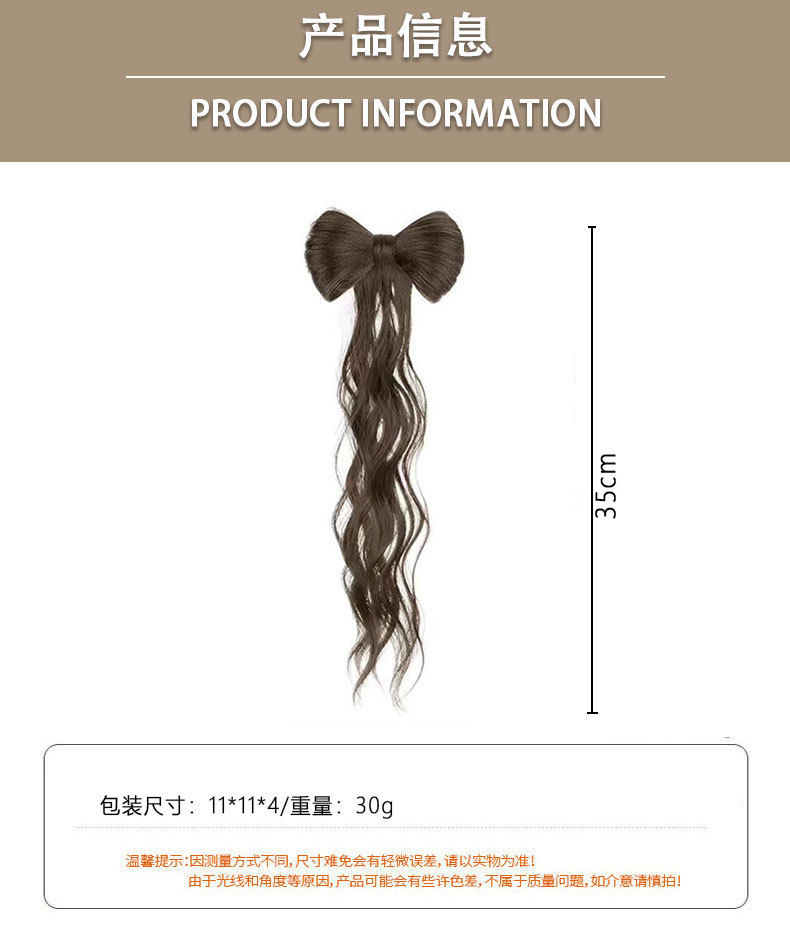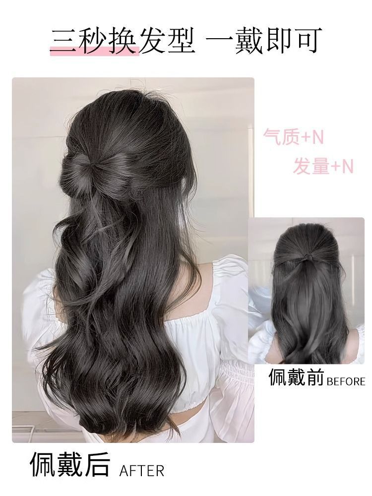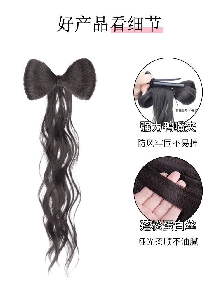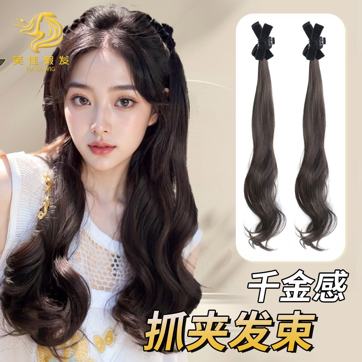 クロスボーダー女性用蝶結びハーフタイマーメイドヘアクリップ、ヨーロッパとアメリカのウィッグクリップ、ロングカーリーヘアポニーテール