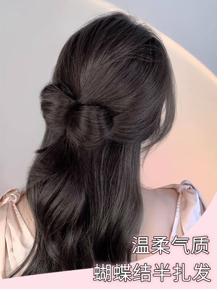 韓系リボンリボン蝶結びの団子の髪はかつらを挟みます。