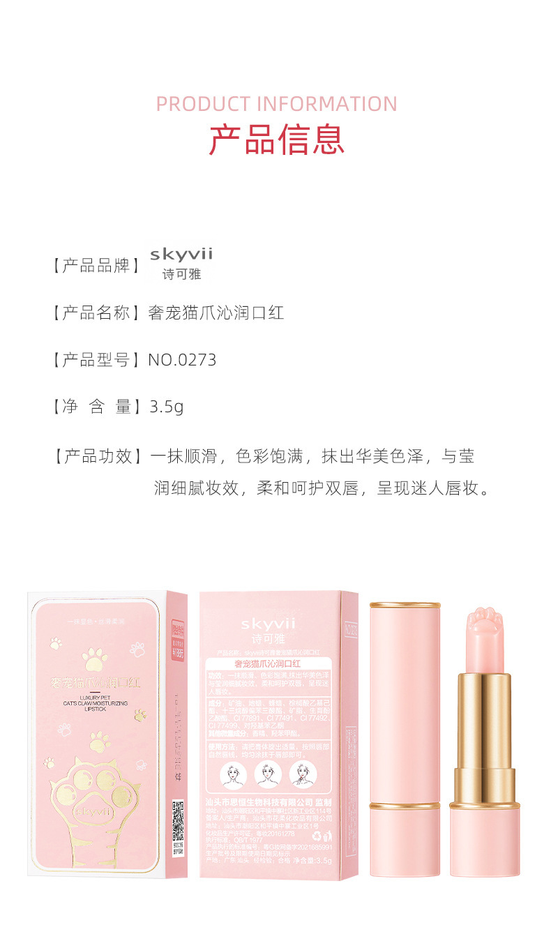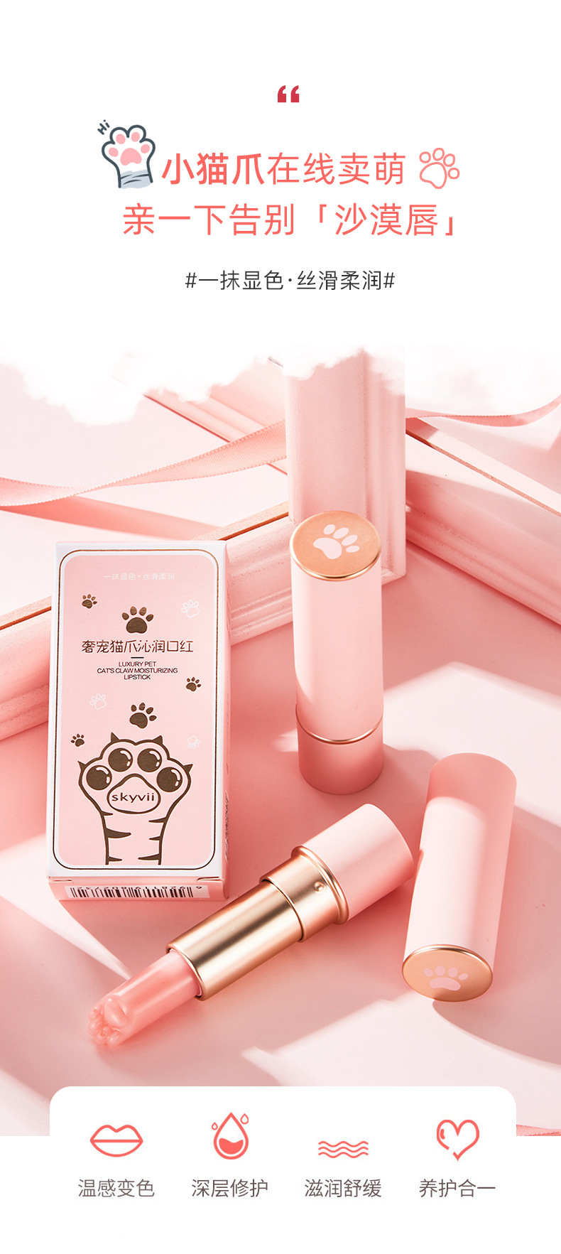 Skyviii詩可雅豪華ペット猫爪沁潤口紅温変潤唇膏はカップの色が落ちにくい国境を越えた対外貿易