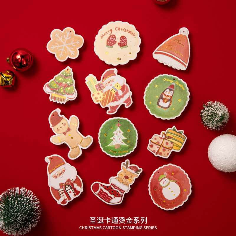 クリスマス手描きタグシール箔押し焙煎装飾サンタクロースプレゼントシールプレゼント包装装飾シール