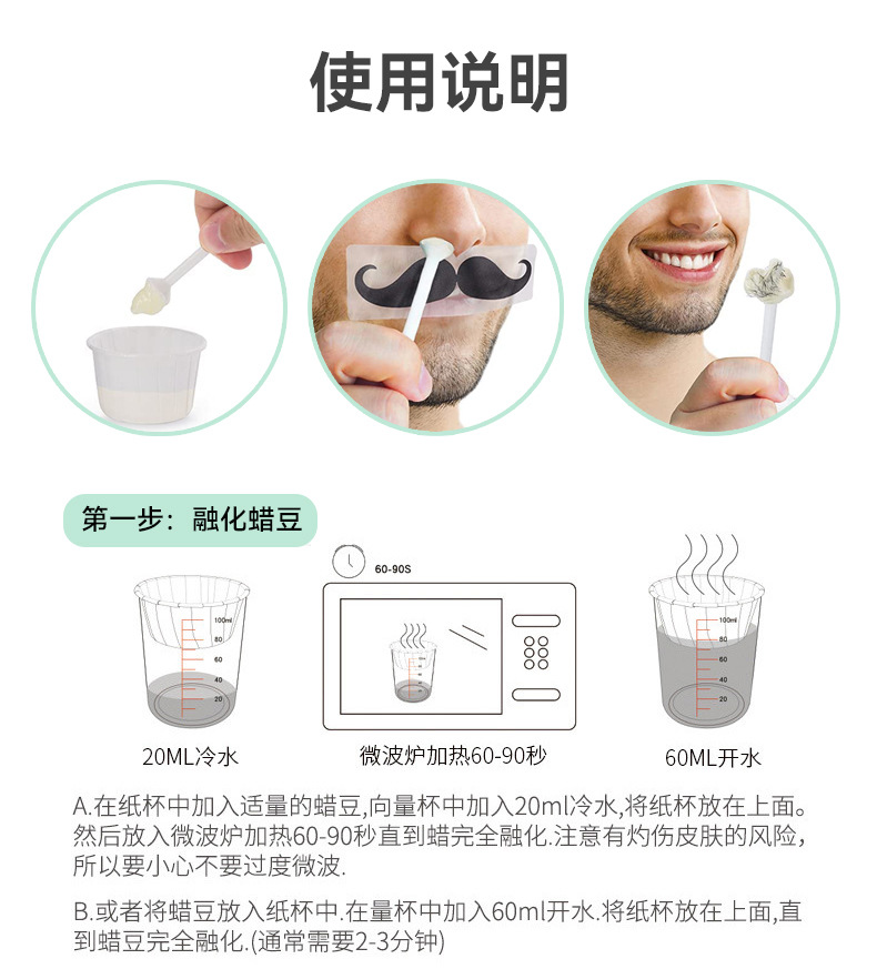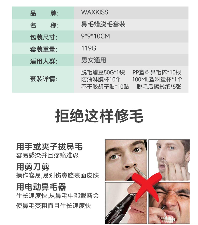 富海川クロスボーダーメンズ脱毛クリーム脱鼻毛ワックス豆全身脱毛ミツロウ鼻毛ワックスブロック脱毛セットグラム