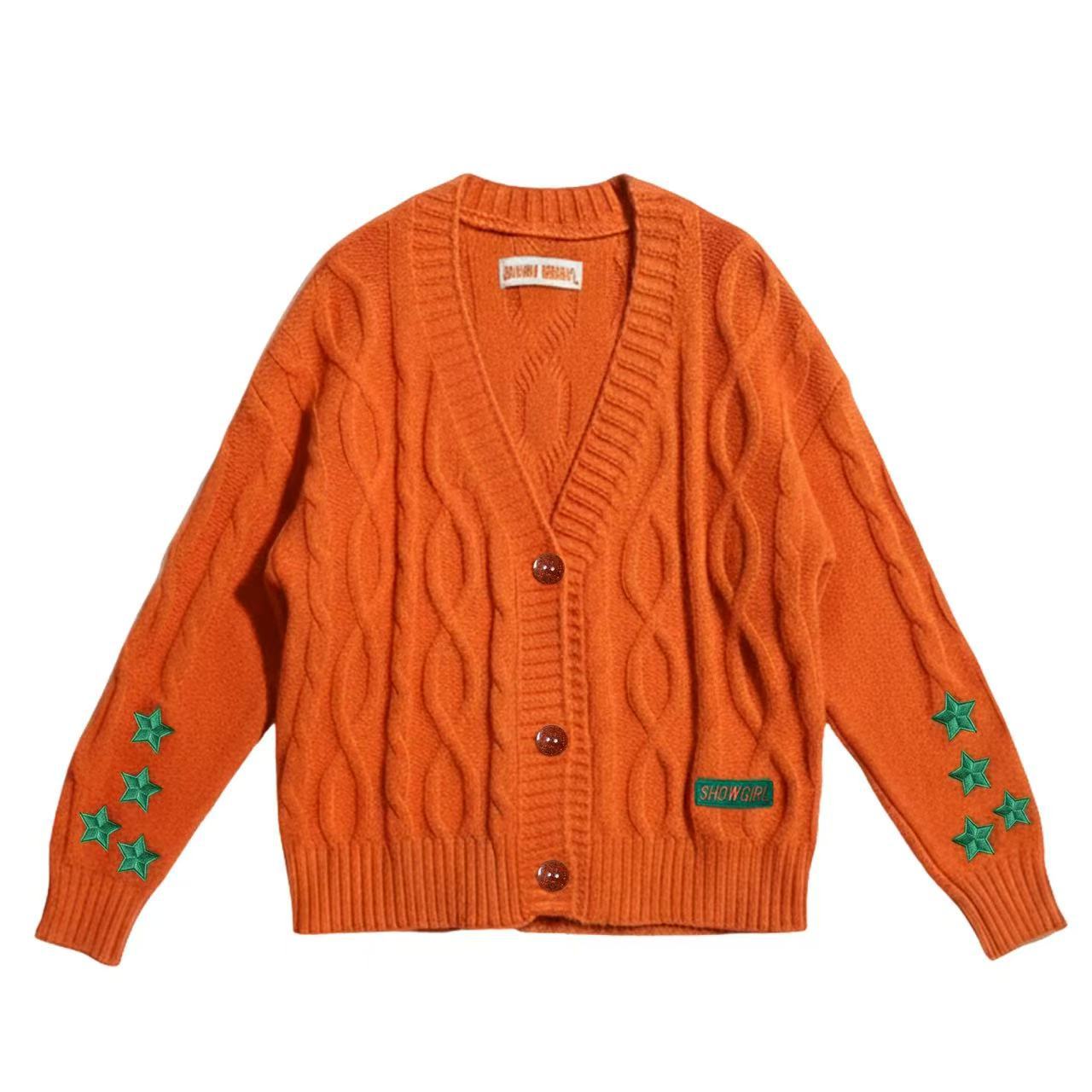 霉霉同款泰勒亚马逊橙色开衫刺绣星星宽松慵懒气质毛衣外套女