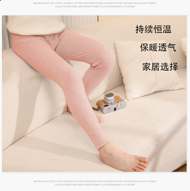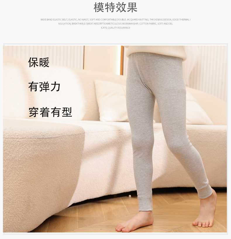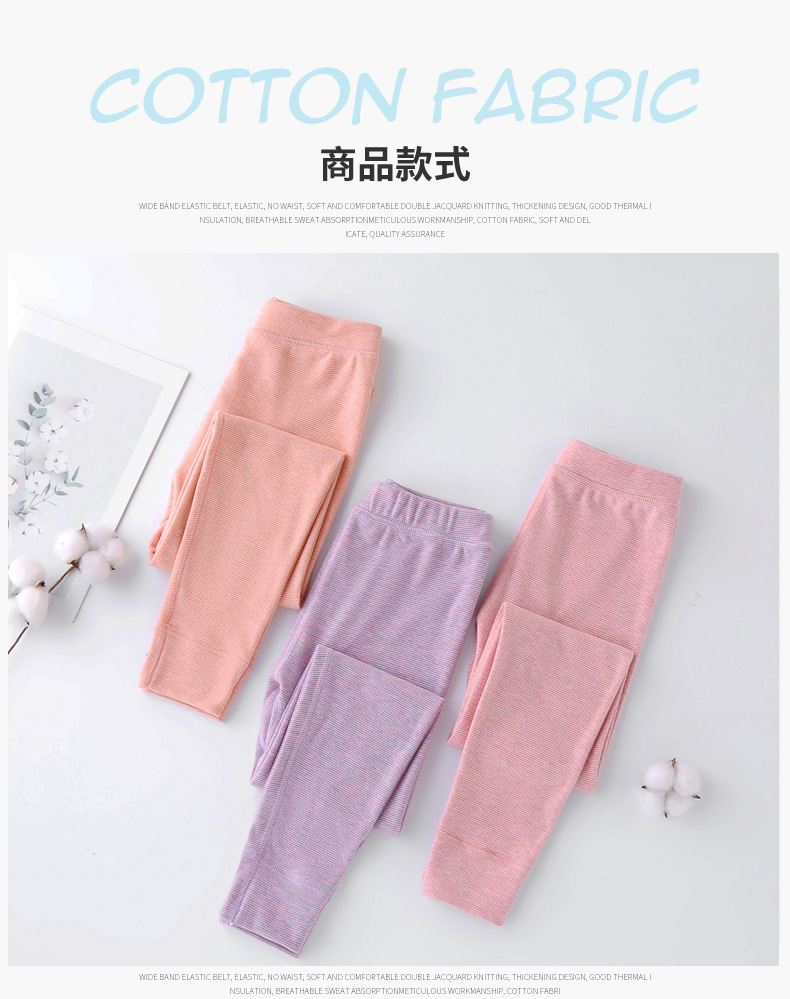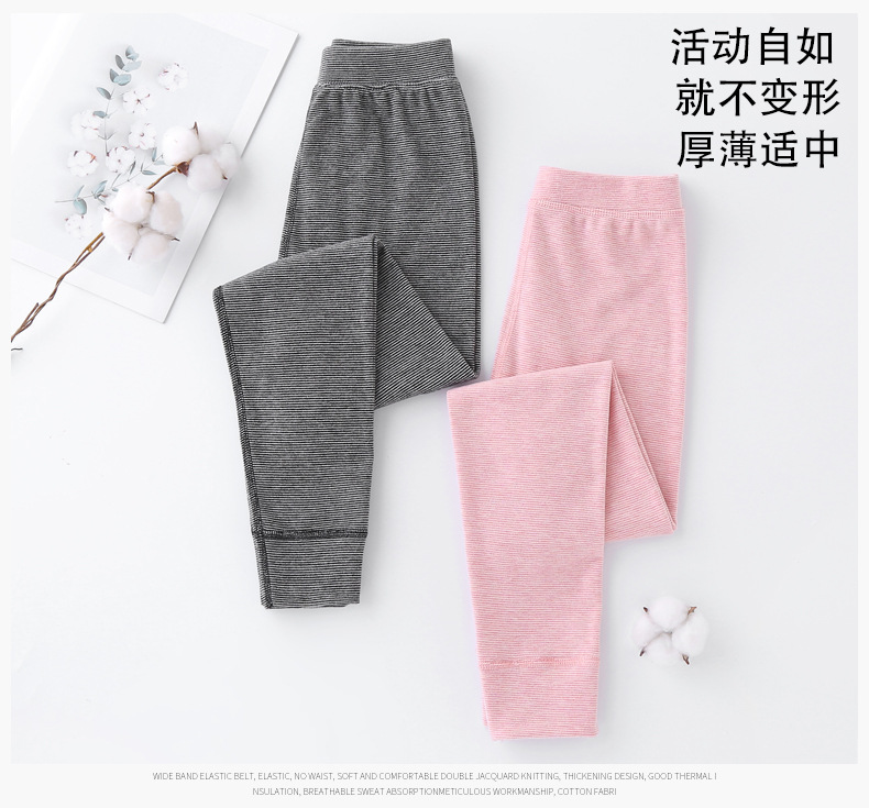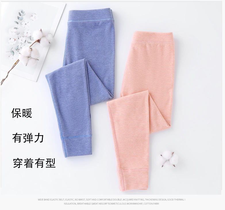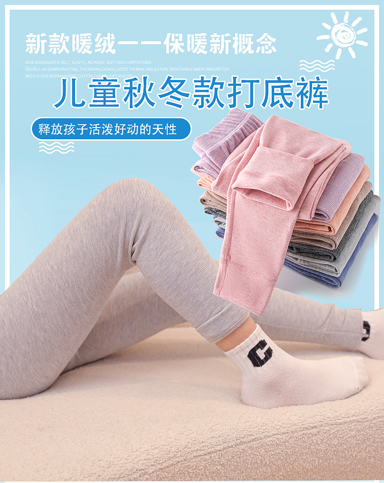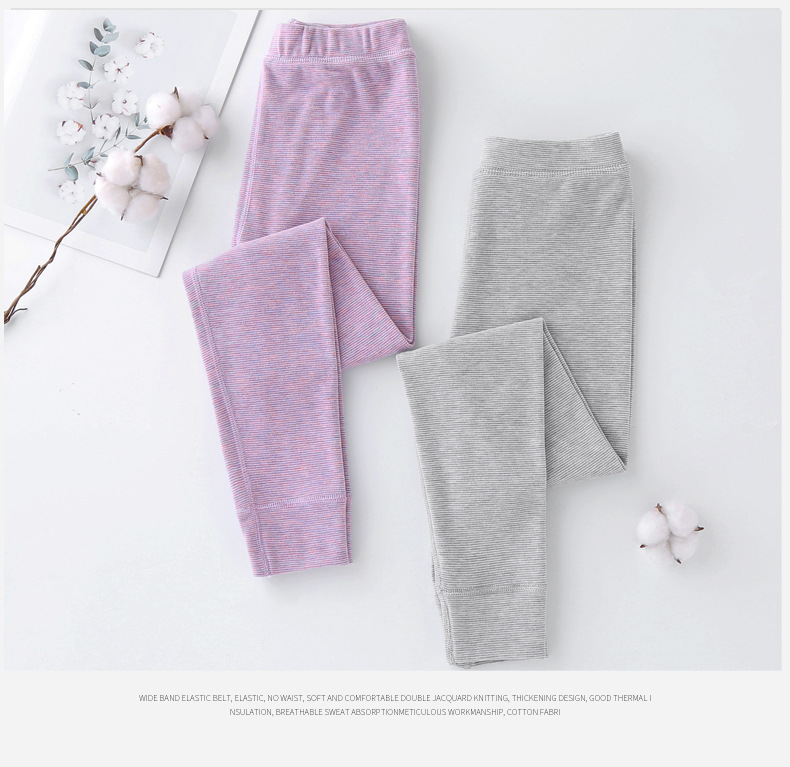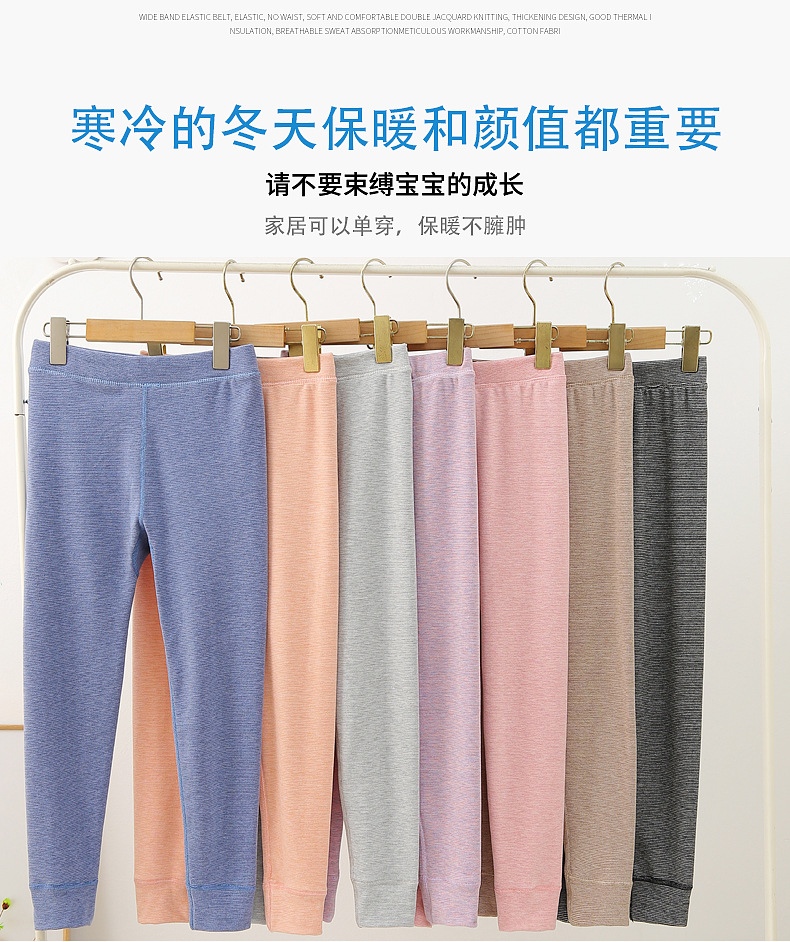 24秋冬児童保温ズボン男女児童宝宝加パイル厚手打底寝ズボン中小児童縞家庭秋ズボン