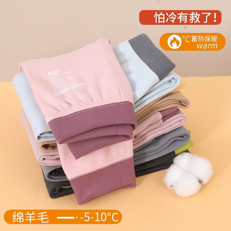 秋冬用子供用羊毛保温パンツ、男女兼用ウールパンツ、子供用厚手裏起毛ベビー綿パンツ、秋用下着
