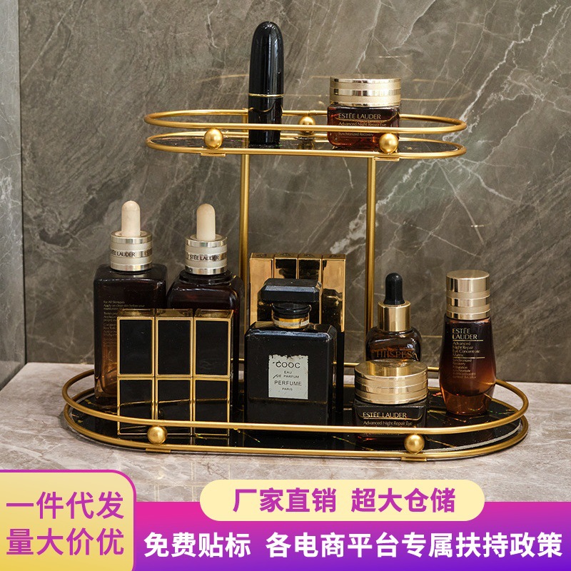 ダブル物置ラック大容量化粧品スキンケアデスクトップ収納鉄芸浴室洗面用品整理棚