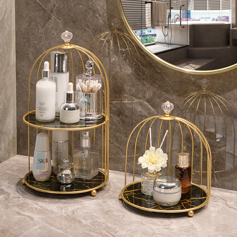 錬鉄製のバスルームデスクトップ収納ボックスカウンタートップ口紅化粧品収納ラックバスルームシンク鳥かご収納ラック