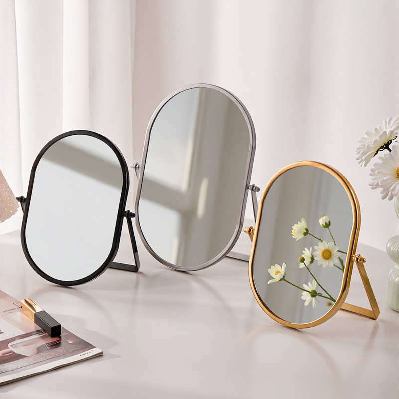 化粧鏡デスクトップデスクトップ寝室回転360楕円形鏡ins寮化粧鏡高颜値オフィス