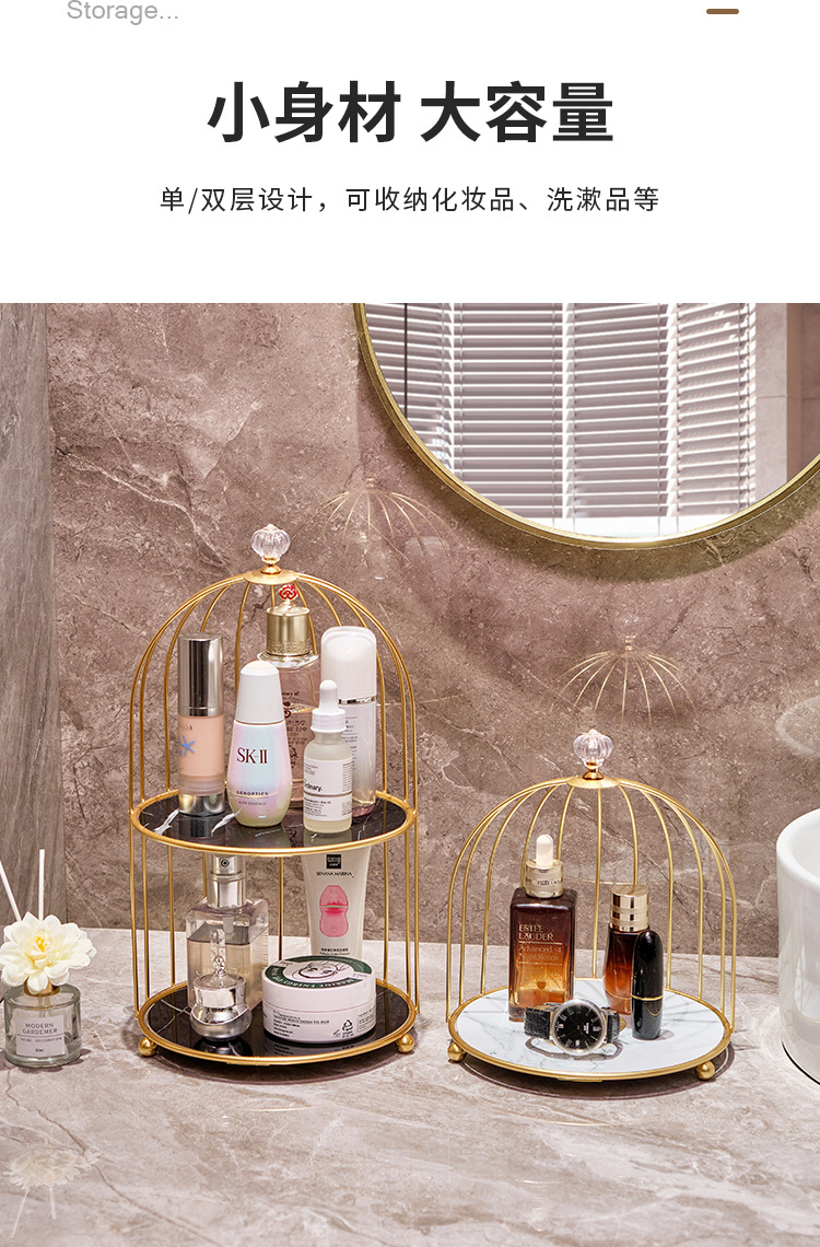 北欧洗面化粧台トイレデスクトップ収納ボックス化粧用品洗面台鳥かご置物ラックトイレ