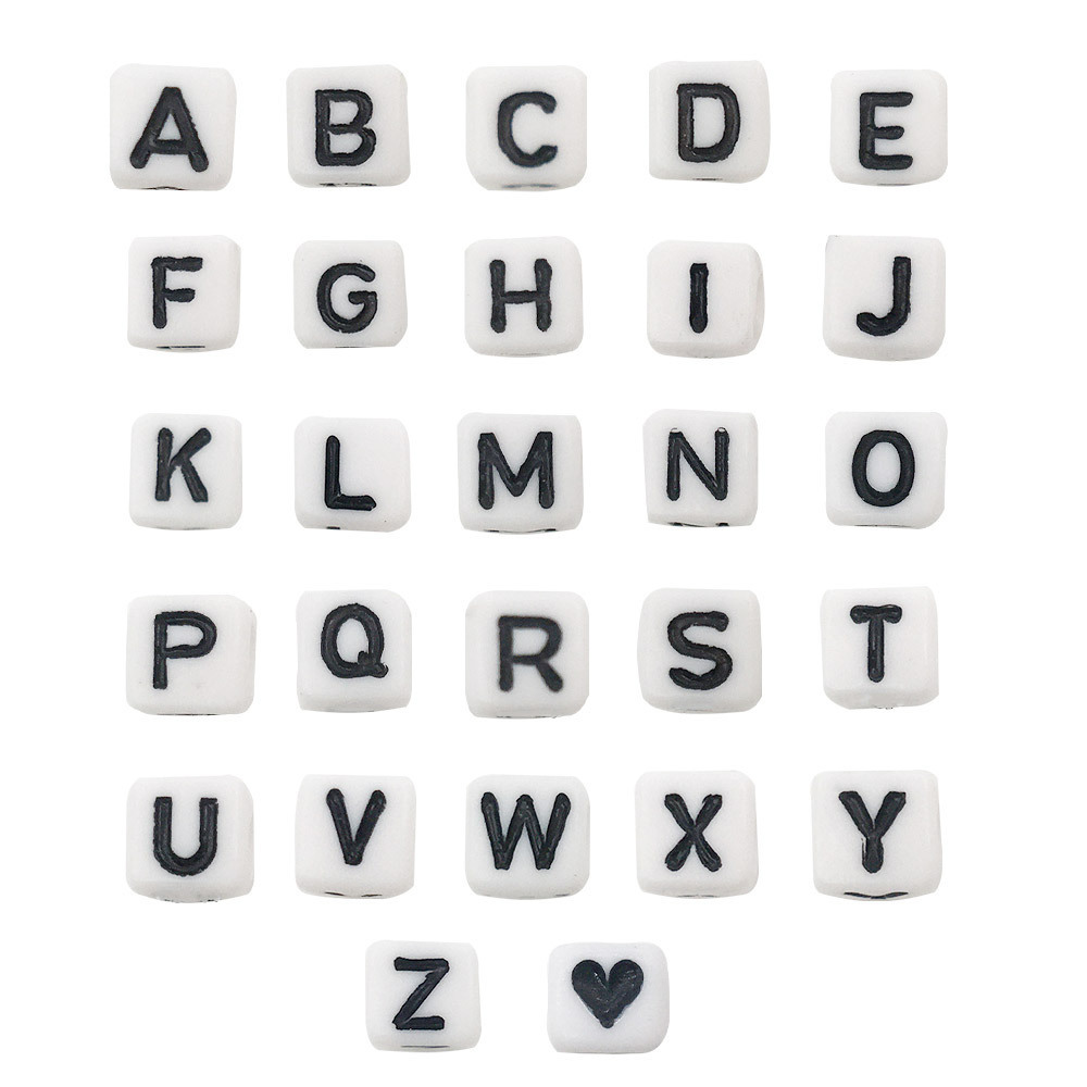 アクリル散珠白地彩字黒字英語円形角型字母珠児童diy手作りビーズバッチ