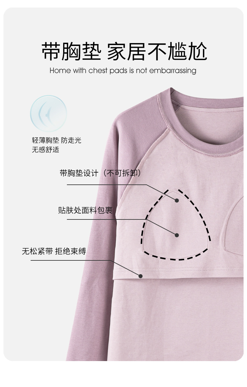 月子服春秋の薄い妊婦の産後の授乳服の純色の甘いモーダルセットの胸パッド付きの家の服