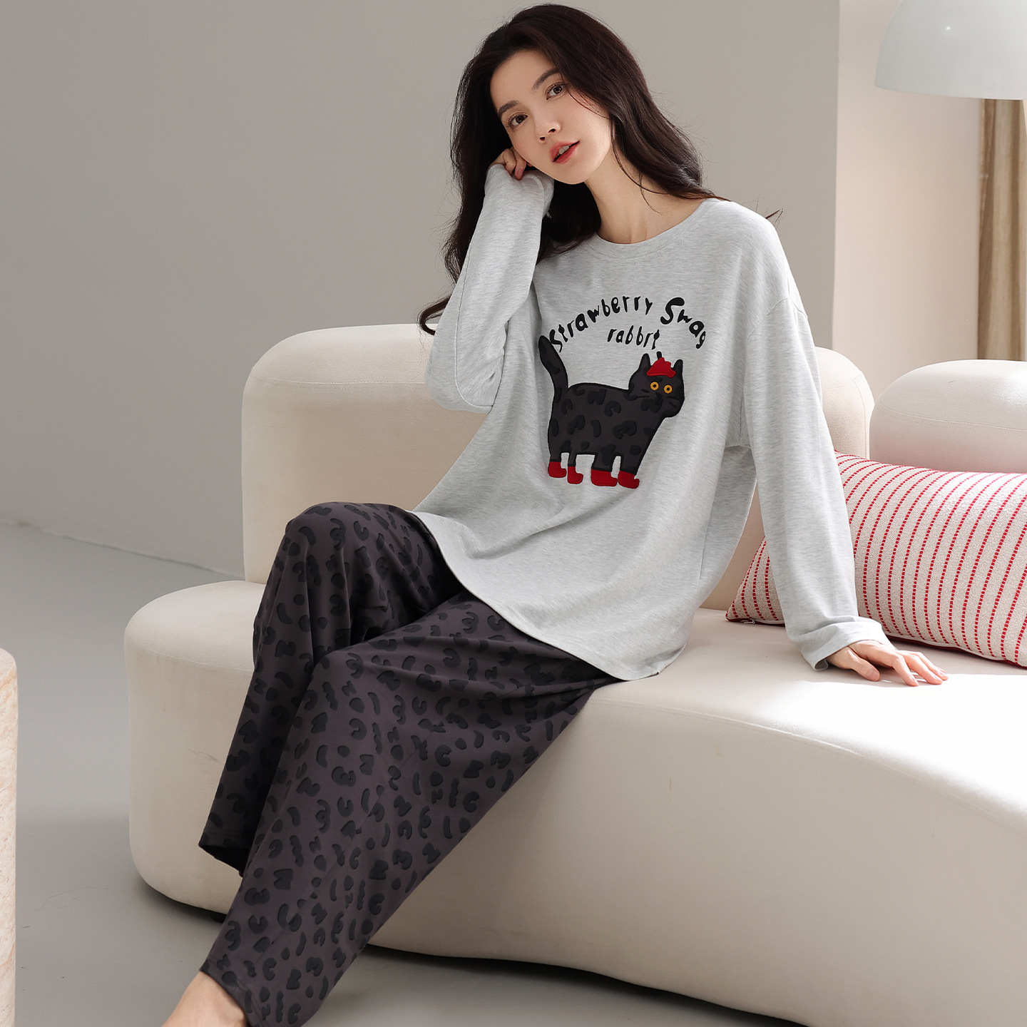 カップルパジャマ女性秋冬長袖長ズボン2点セットフランネル漫画かわいい少女ホームウェア外着可