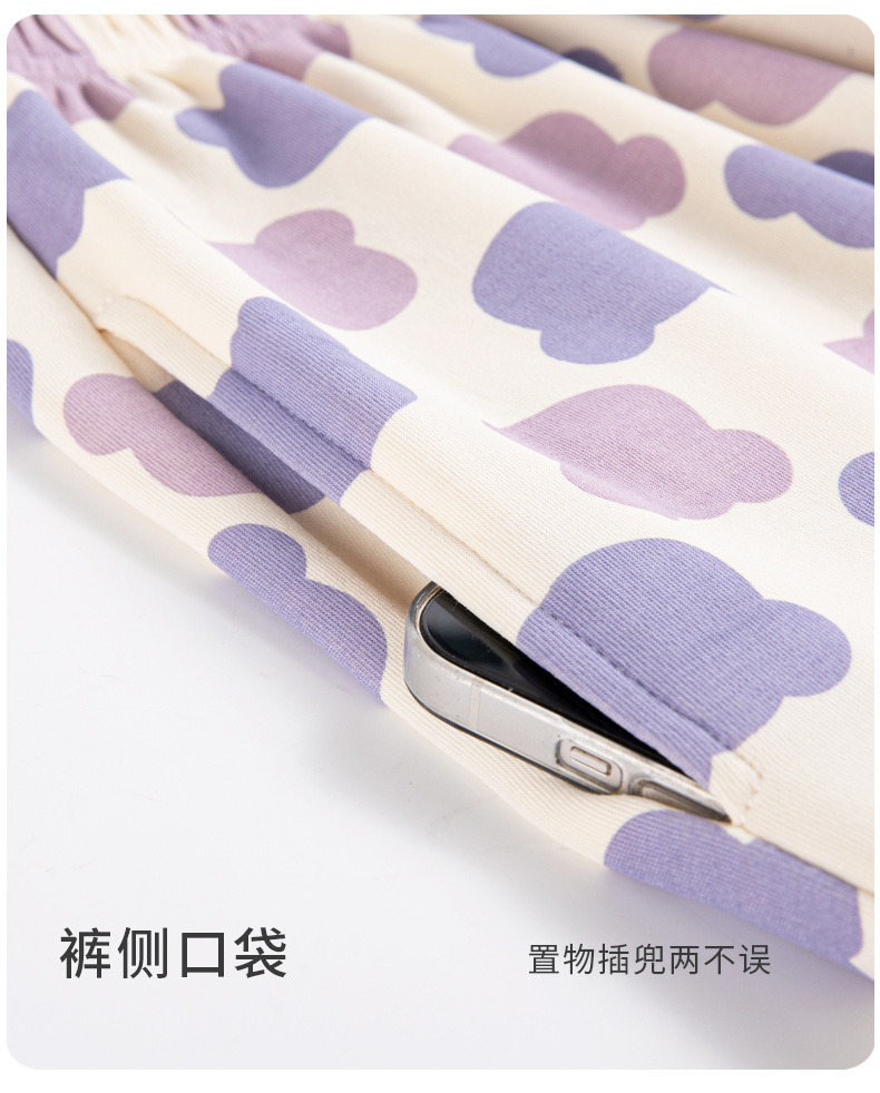 パジャマの女性春秋の純綿の長袖のズボンの2つのセットのアニメのかわいい少女は胸のクッションの家の服を持って外に着ることができます。