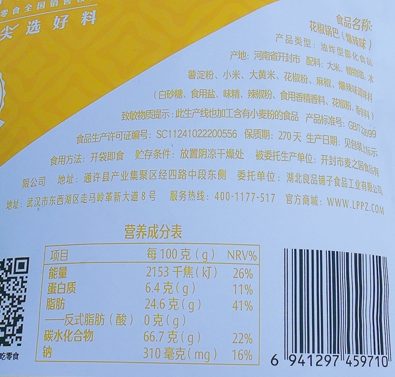 良品铺子 花椒锅巴 108g 激辛味 スパイシースナック 小米鍋巴 ネットで話題の鍋巴スナック サクサク