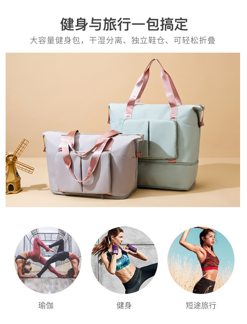 クロスボーダーのフィットネスバッグ女性の休日のスポーツバッグの乾湿分離防水水泳バッグのヨガのハンドバッグの明るい面の綿服のバッグの湿気