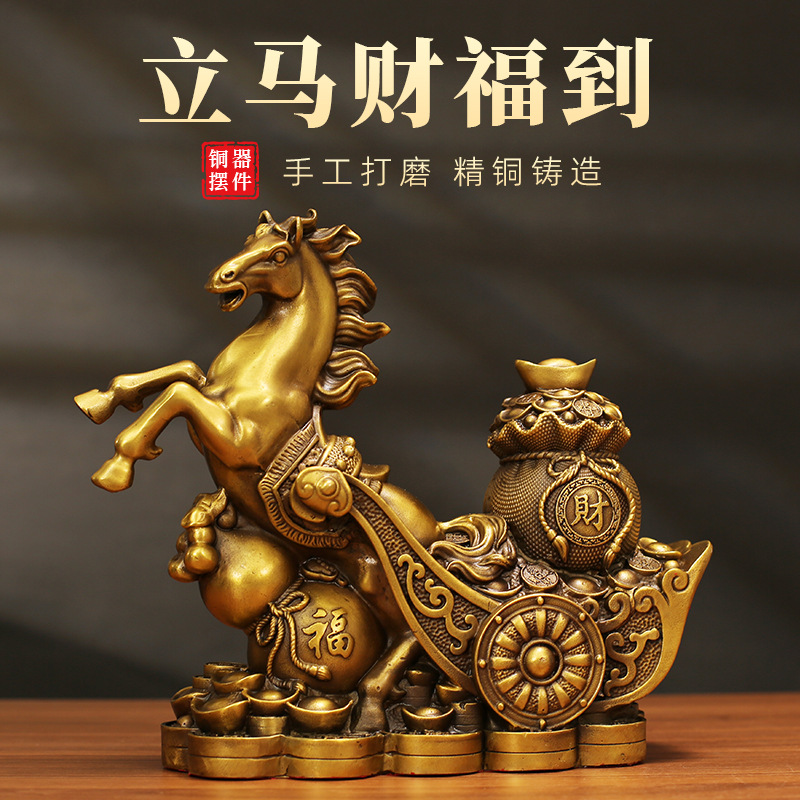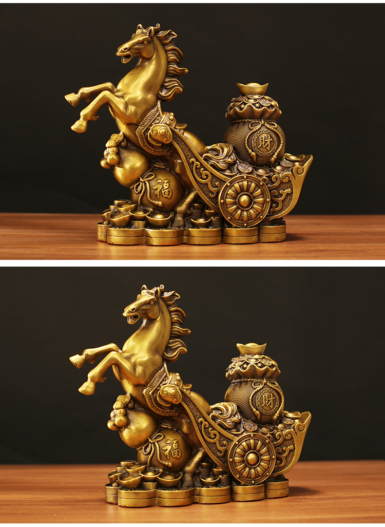 铜马摆件马上发财马上财福到家居摆设客厅装饰马拉车办公室摆饰