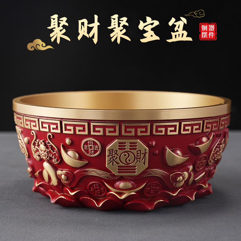 黄铜吉祥如意聚宝盆摆件吉祥聚宝盆客厅店铺装饰品开业送礼批发
